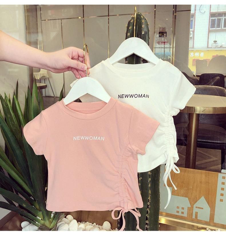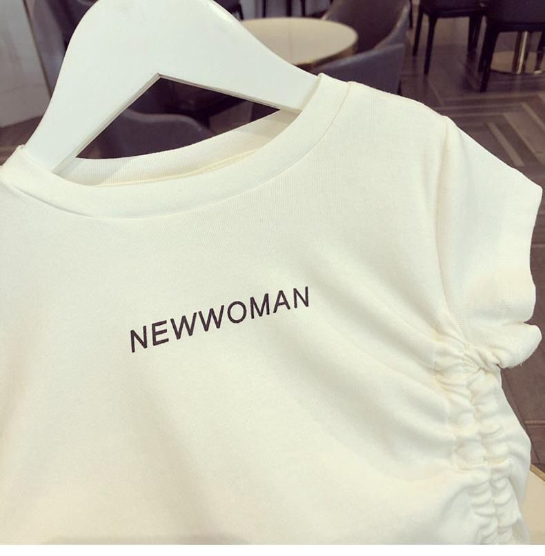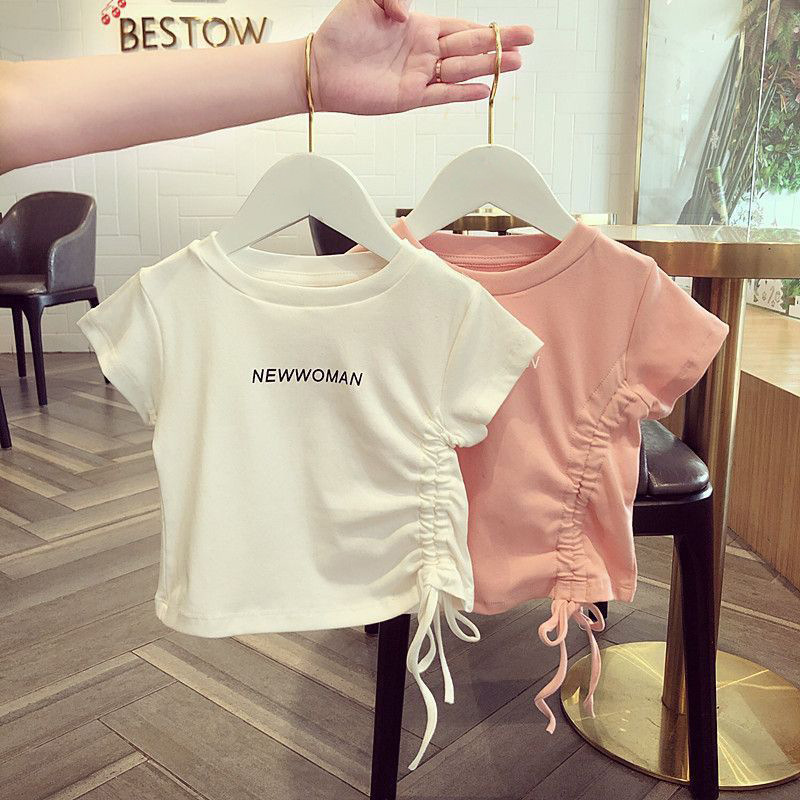 소녀면 반팔 티셔츠 2024 년 새 여름 한국 스타일 소녀 드로우 레터 올매치 어린이 서양식 탑