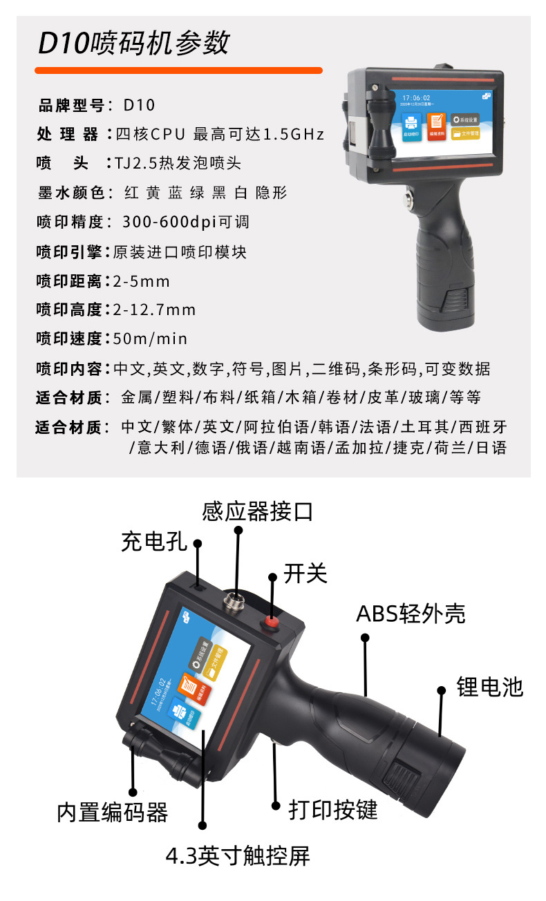 • D10 업그레이드 잉크젯 프린터 코드 스캔 건