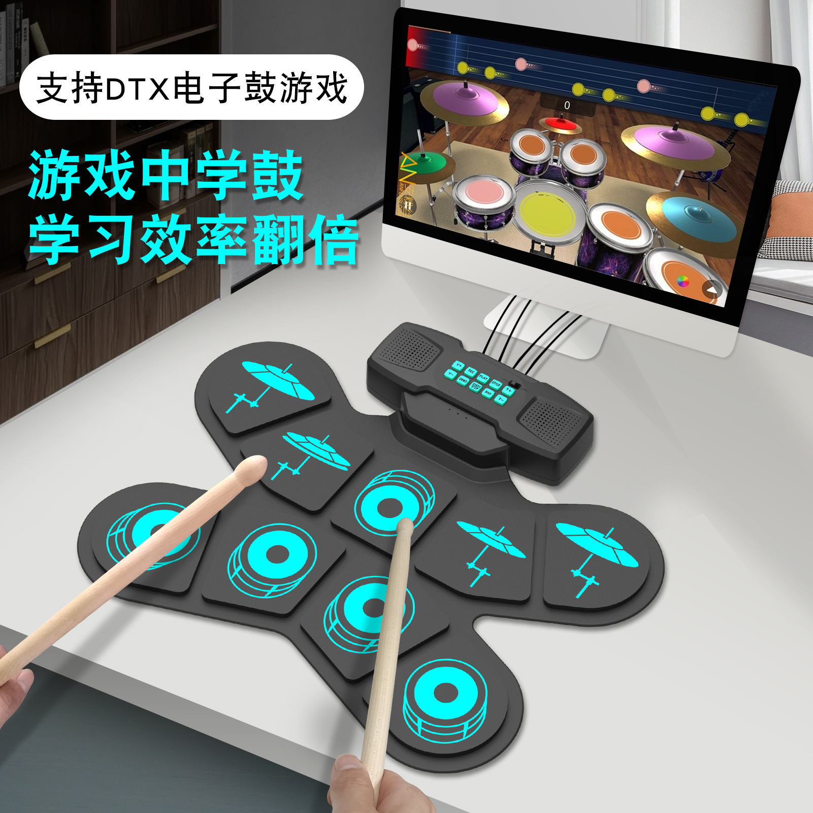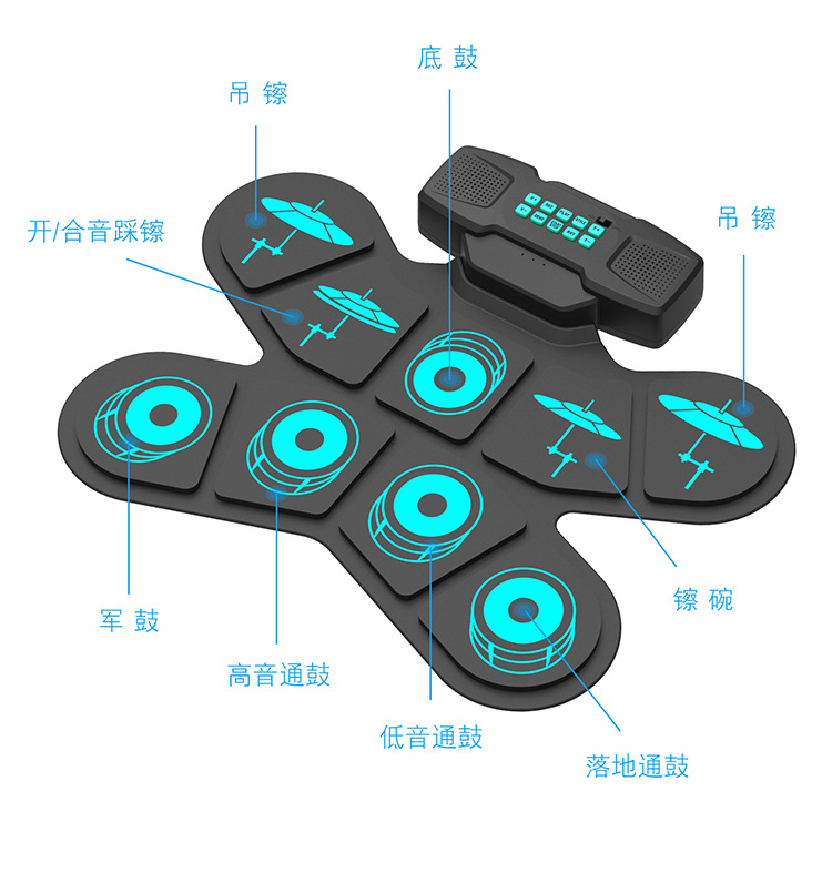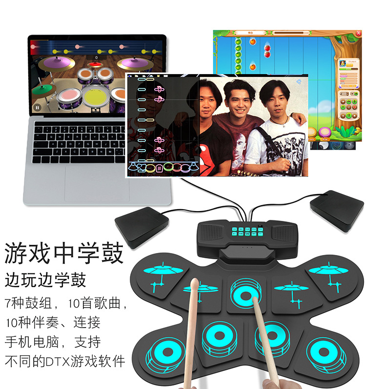 핸드 드럼 전자 드럼 블루투스 충전 드럼 DTX 게임 실리콘 휴대용 접는 타악기 장난감 악기