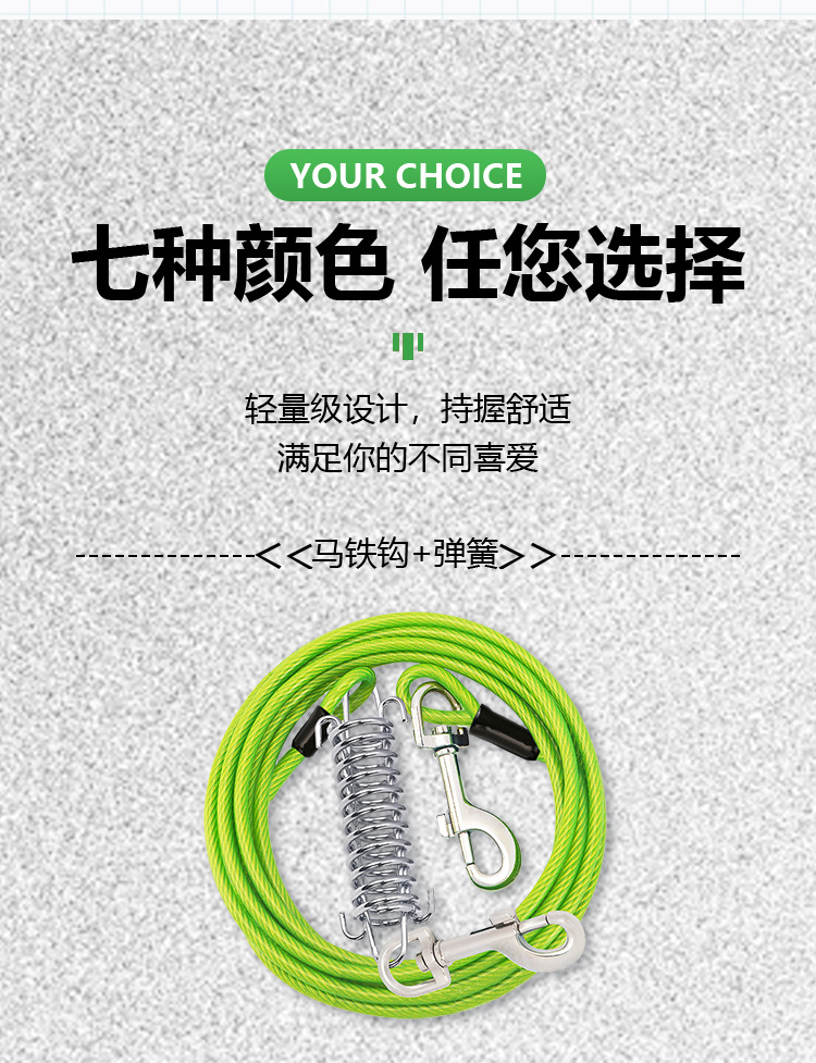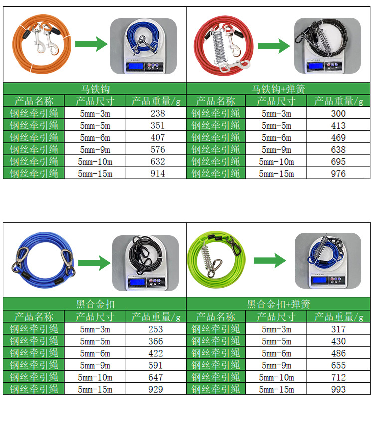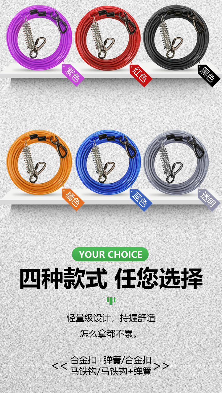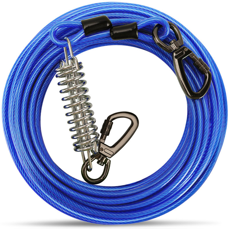 국경 간 야외 개 산책 케이블 고무 트랙션 로프 마 철 버클 애완 동물 스프링이없는 이중 버클이있는 강철 와이어 트랙션 로프스토어 가기