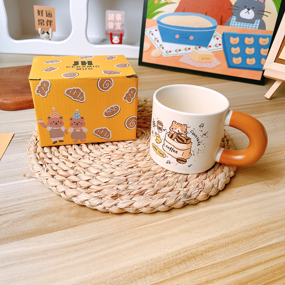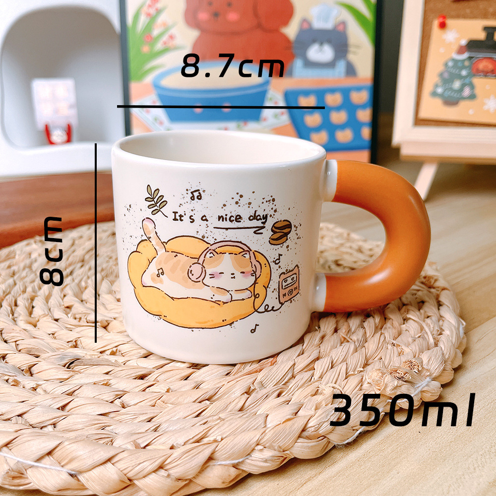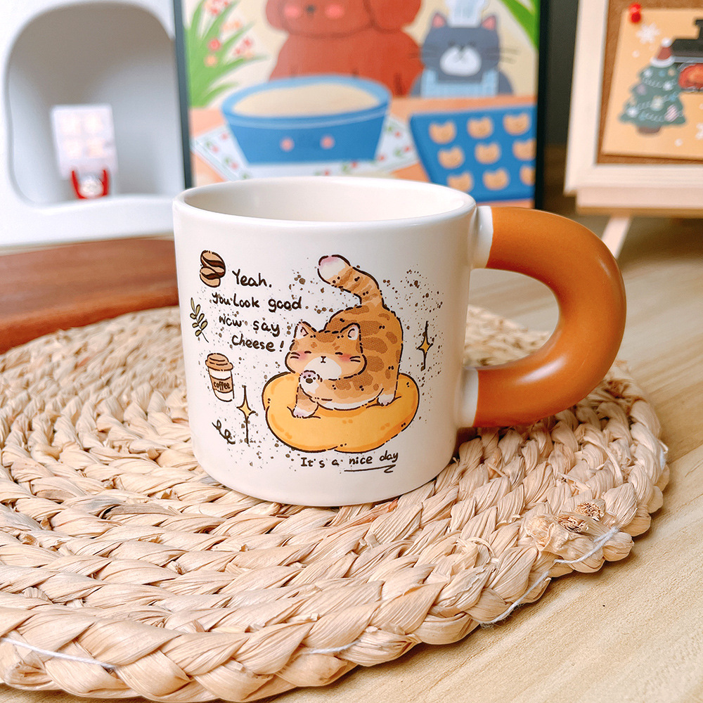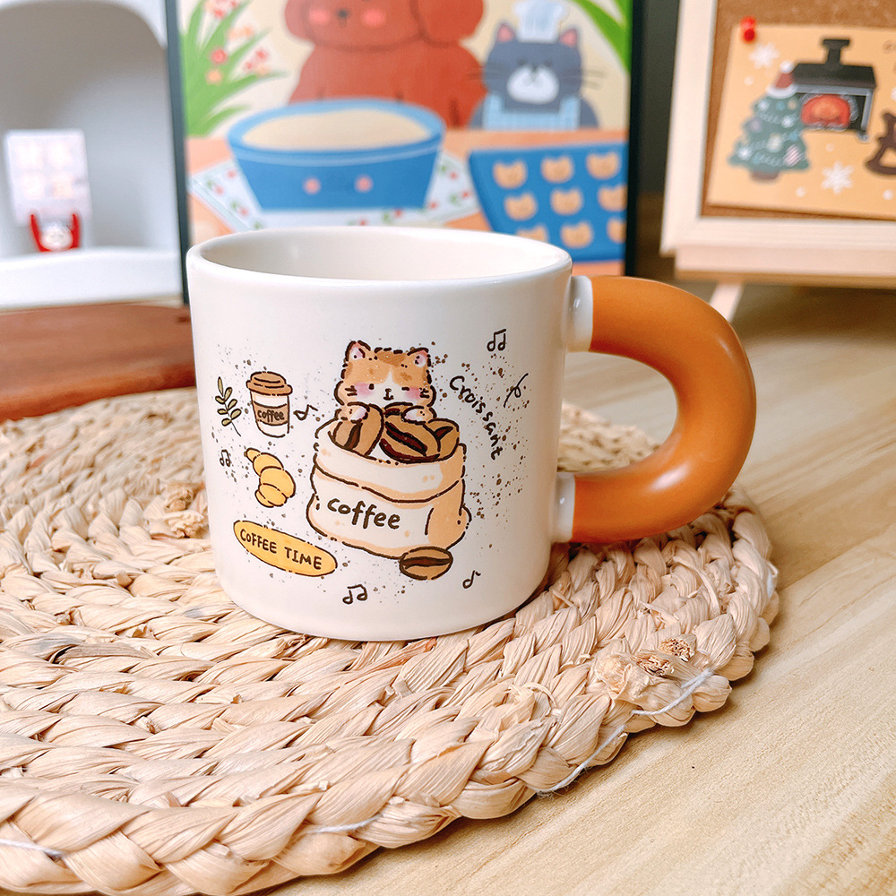 Ins 귀여운 만화 참깨 키티 하키미 Underglyze 컬러 세라믹 머그잔 조식 머그잔 커피 잔 선물