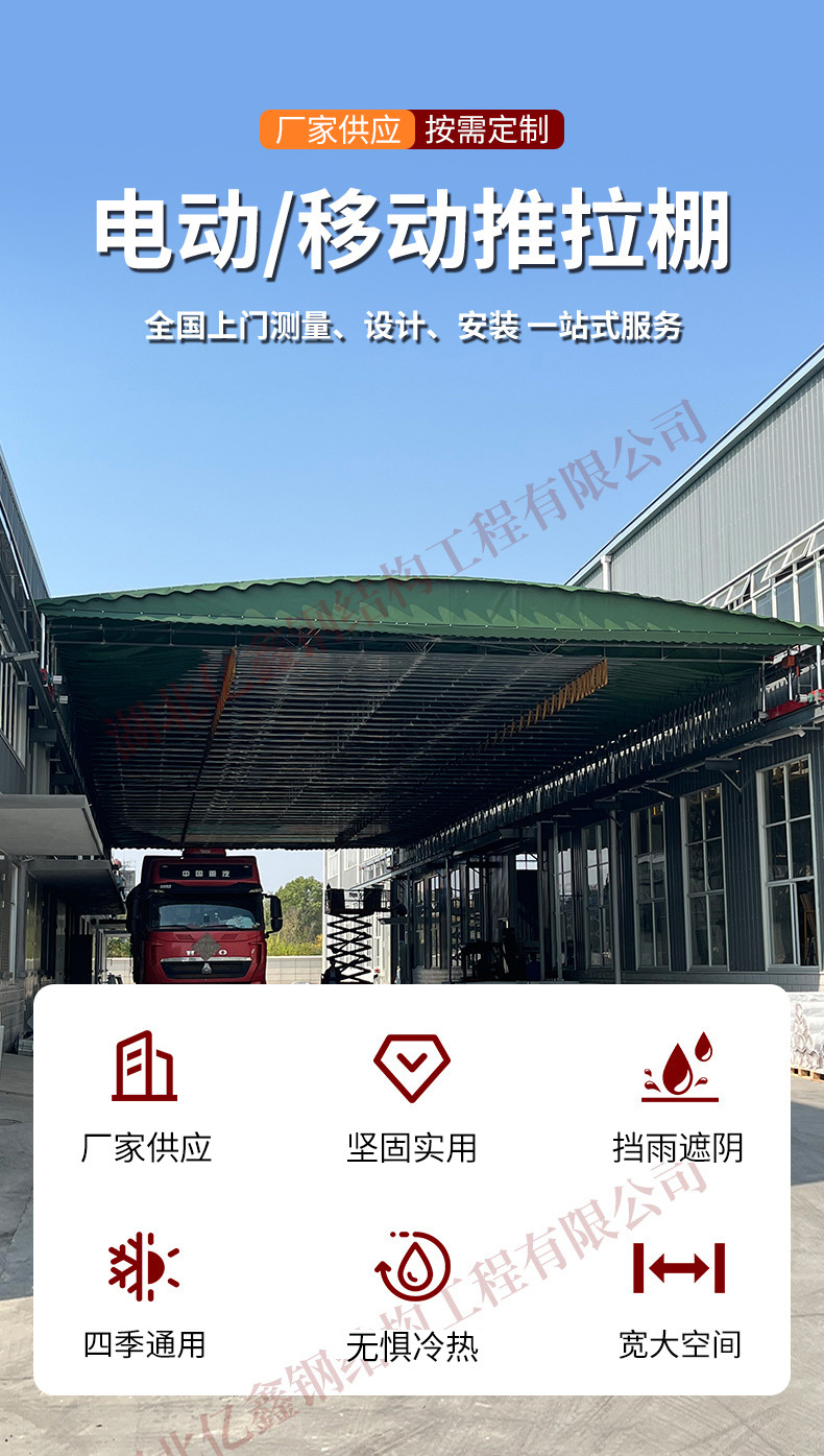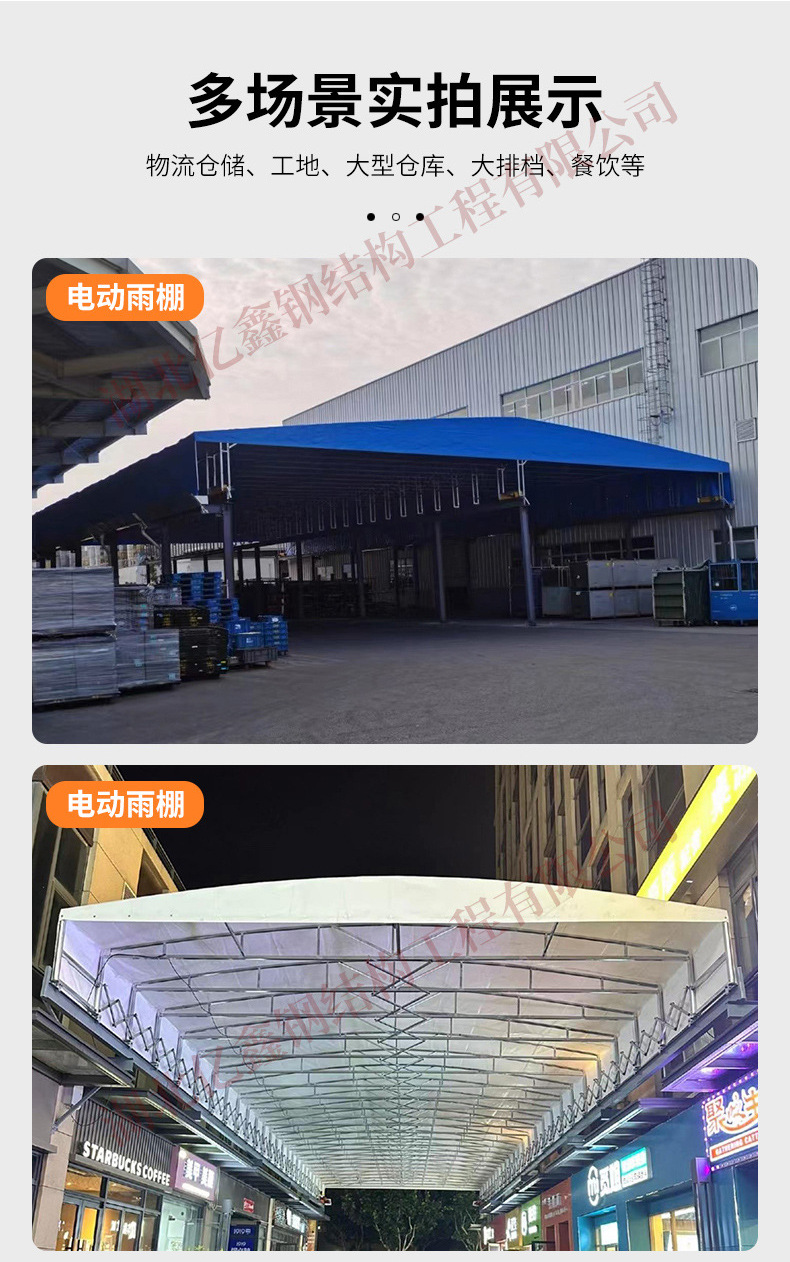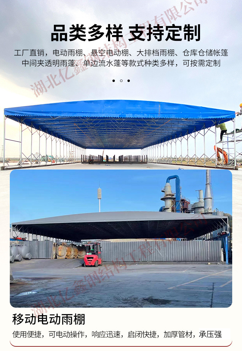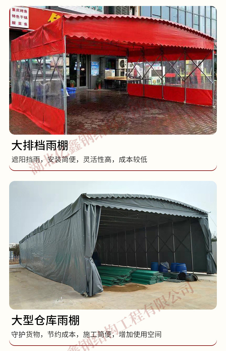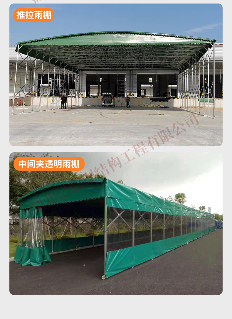 우한 야외 대형 창고 접이식 텔레스코픽 창고 푸시 풀 캐노피 농구 코트 전기 차양 공장 건물 통로 창고