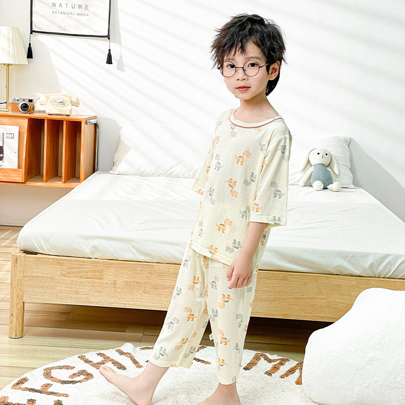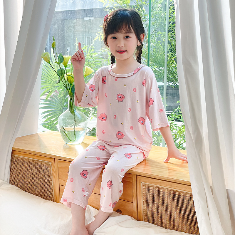 2024 소년 소녀를위한 여름 새 어린이 홈 의류 세트 중소형 어린이 에어컨 세트 용 Lyocell 슬리브 파자마