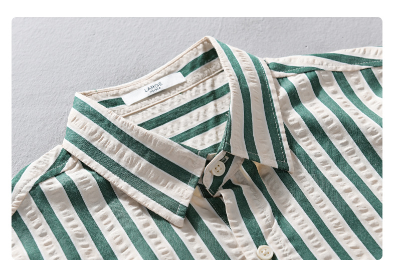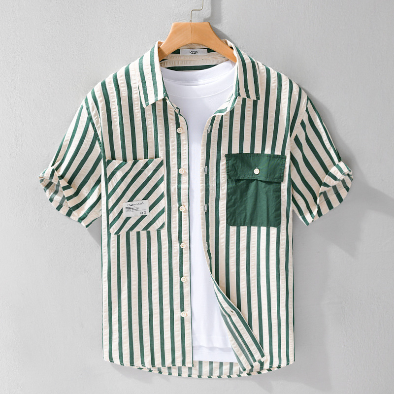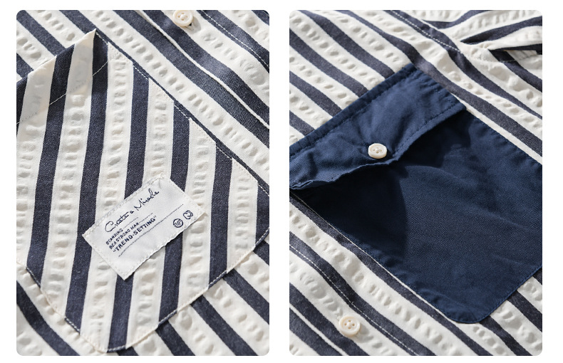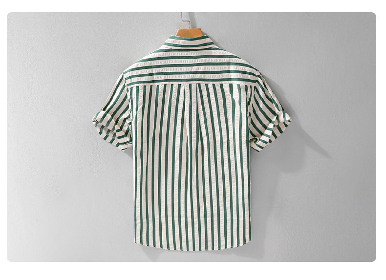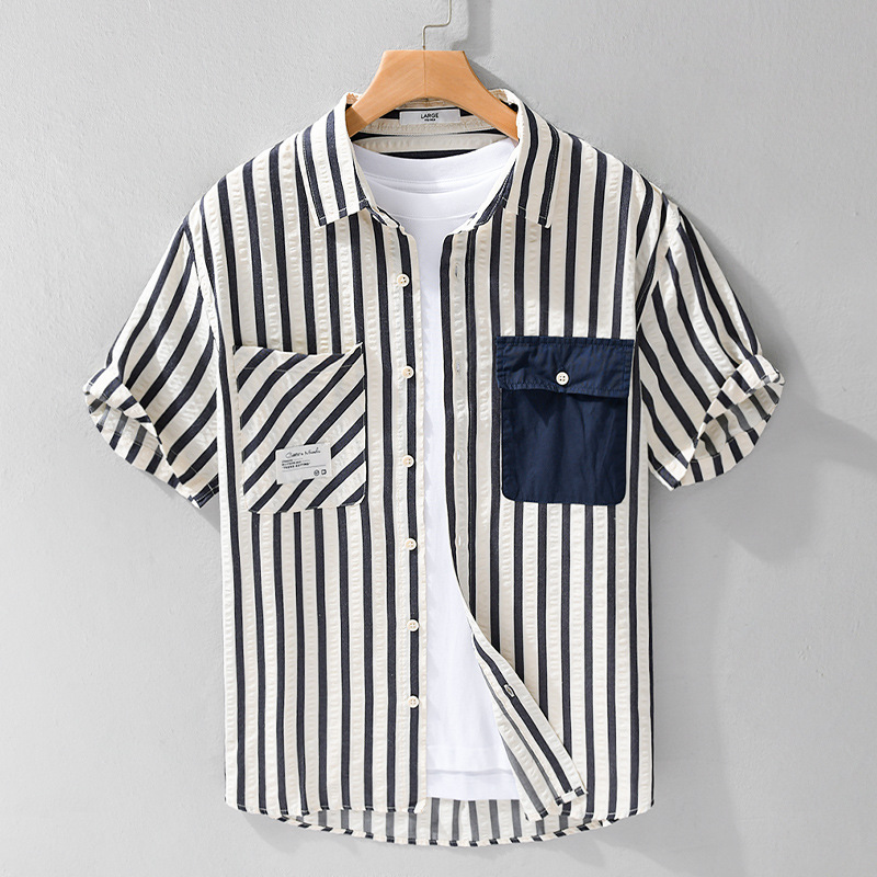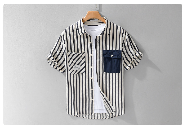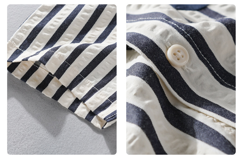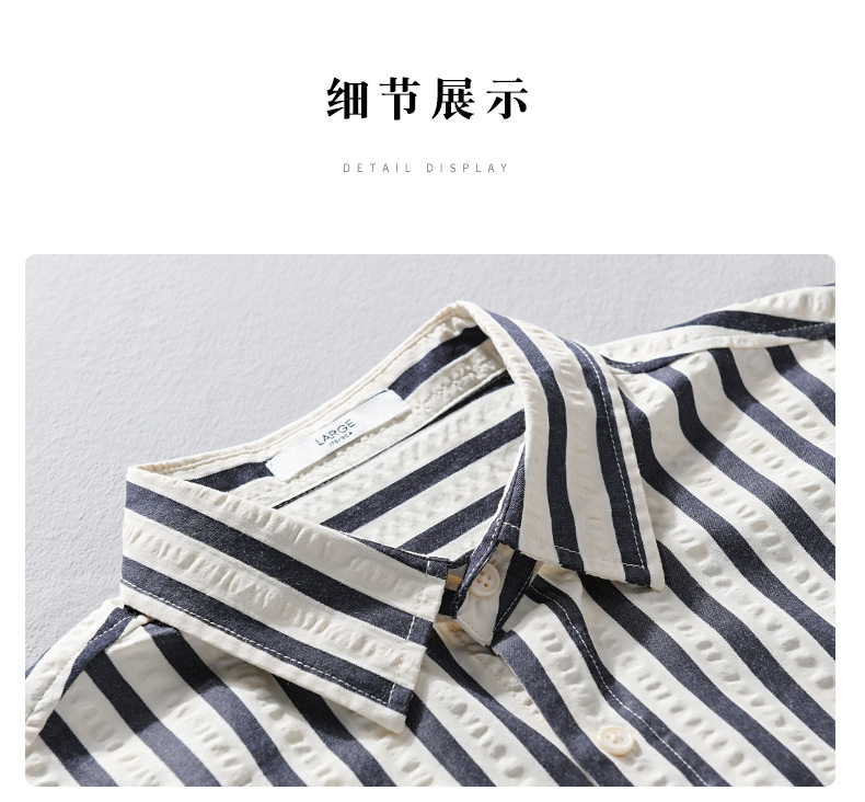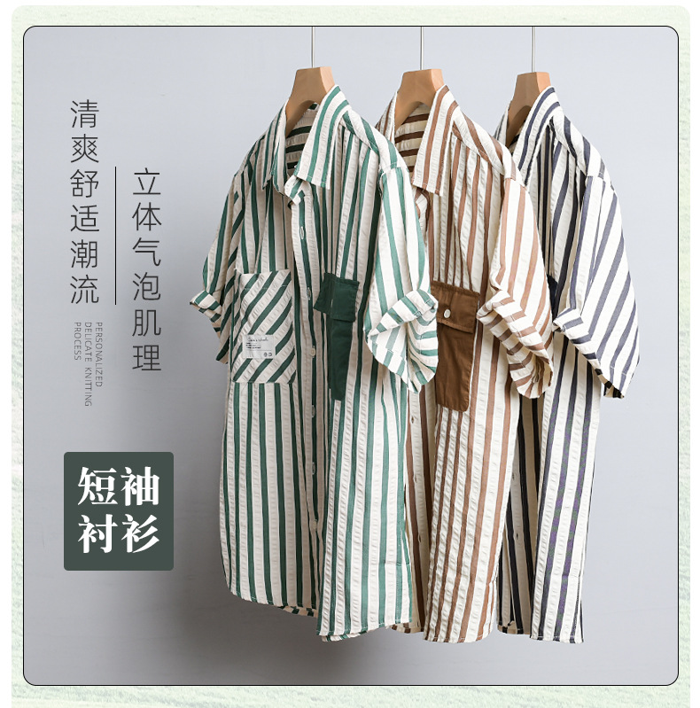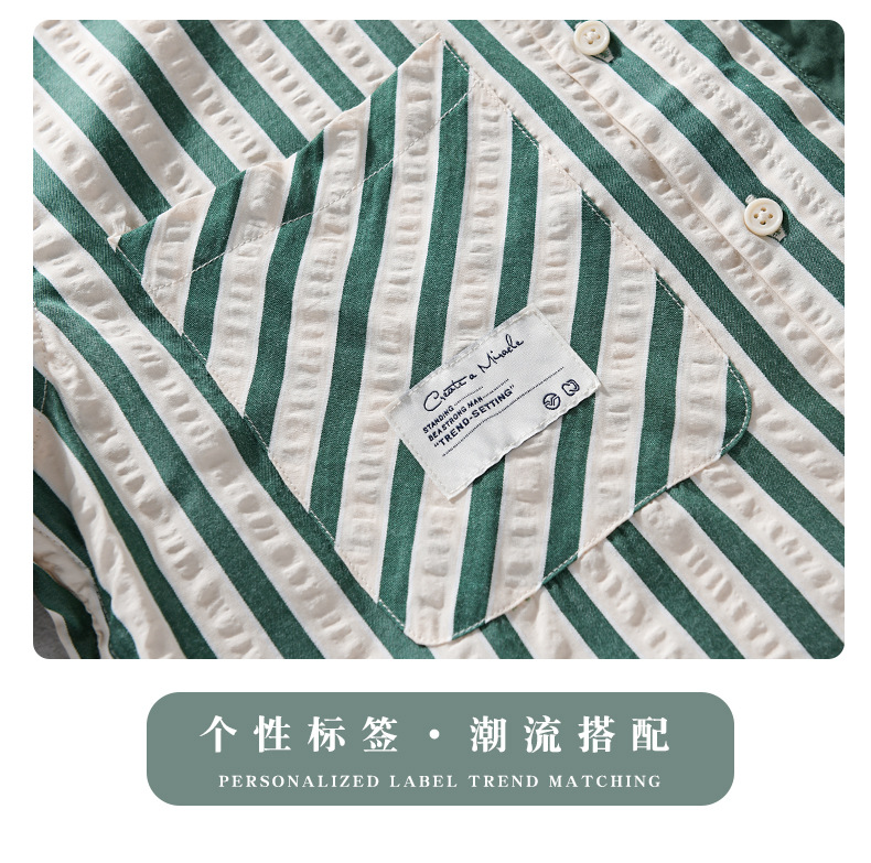 여름 남자 줄무늬 반팔 셔츠 유행 거품 질감 편안한 올 매치 반소매 셔츠 966스토어 가기