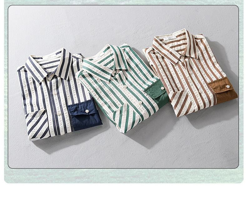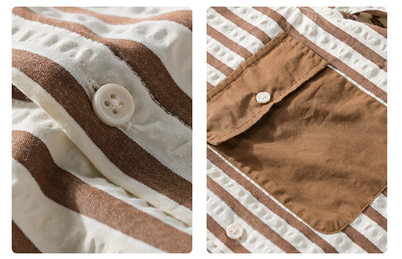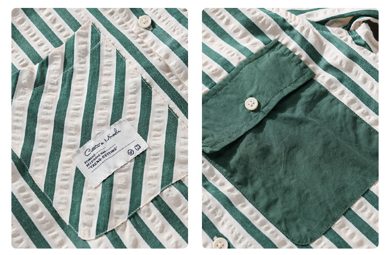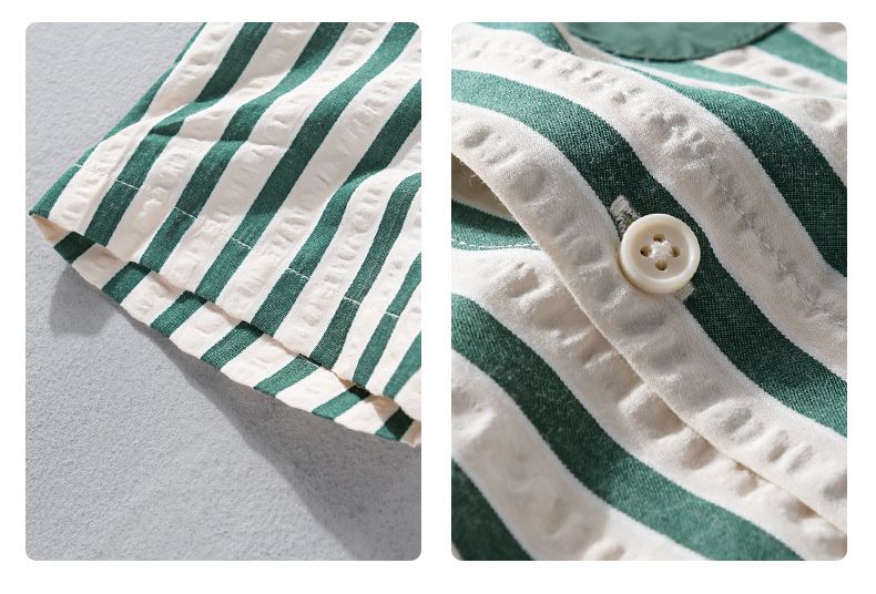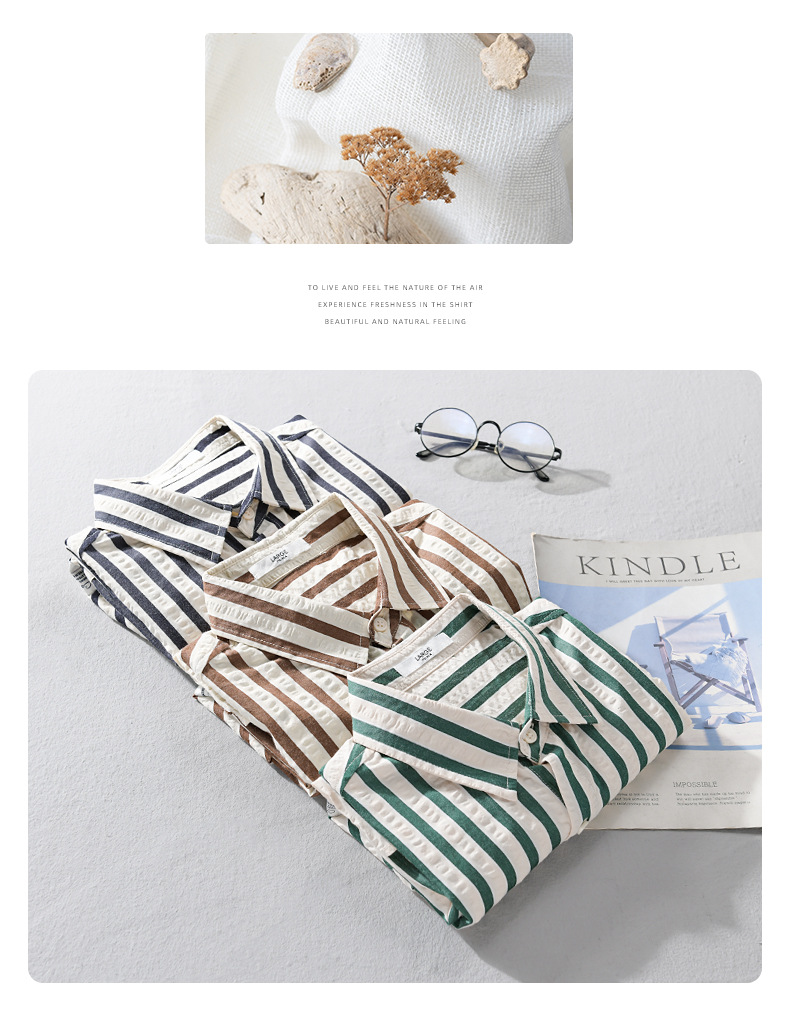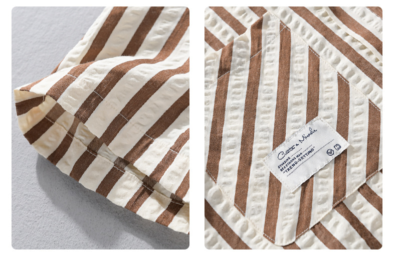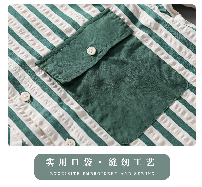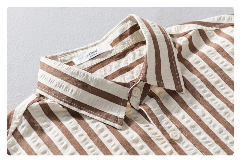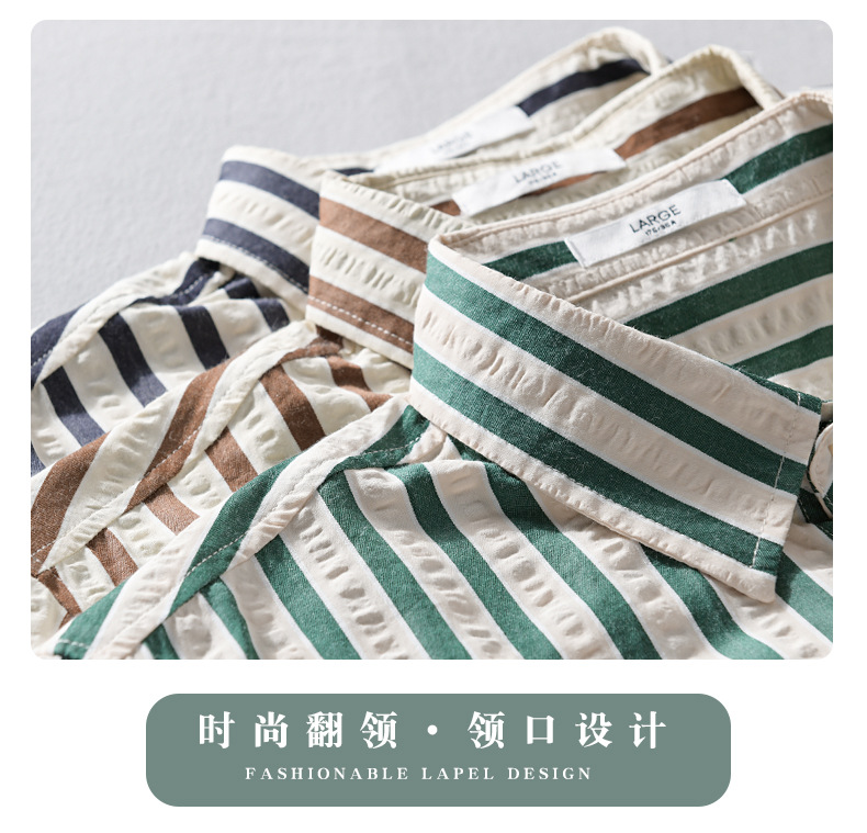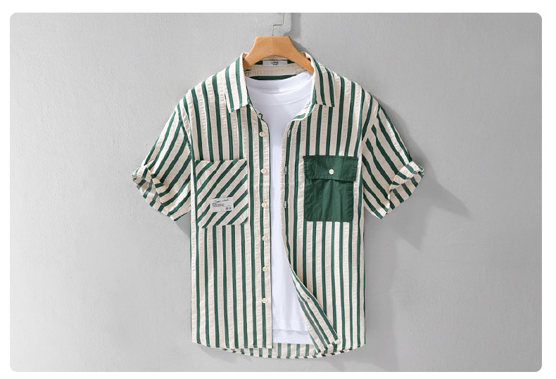 여름 남자 줄무늬 반팔 셔츠 유행 거품 질감 편안한 올 매치 반소매 셔츠 966스토어 가기