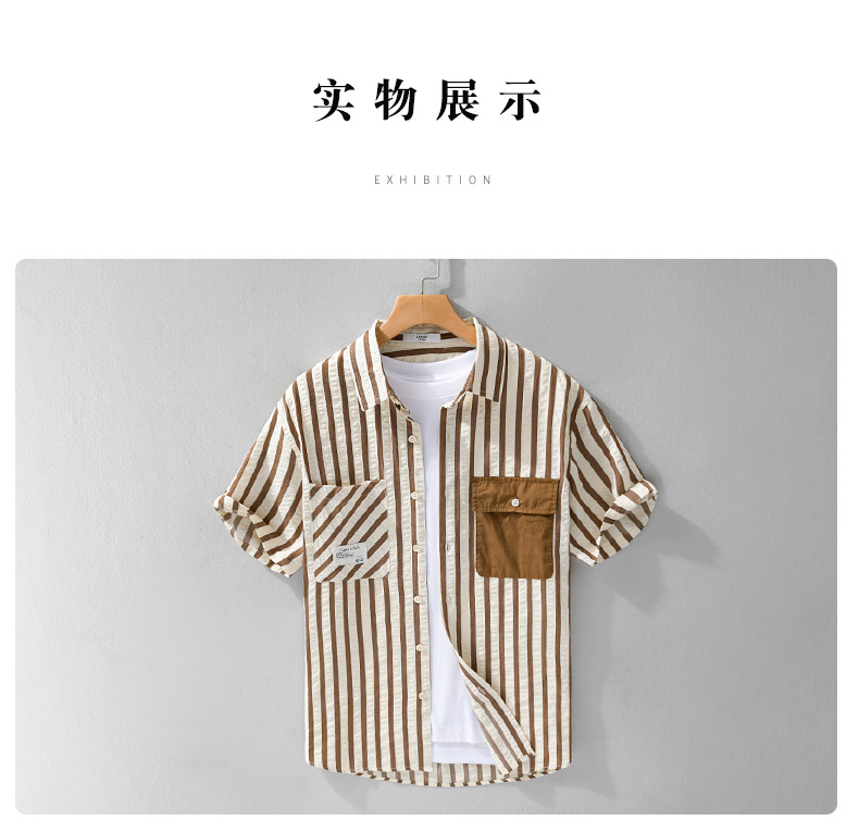 여름 남자 줄무늬 반팔 셔츠 유행 거품 질감 편안한 올 매치 반소매 셔츠 966
