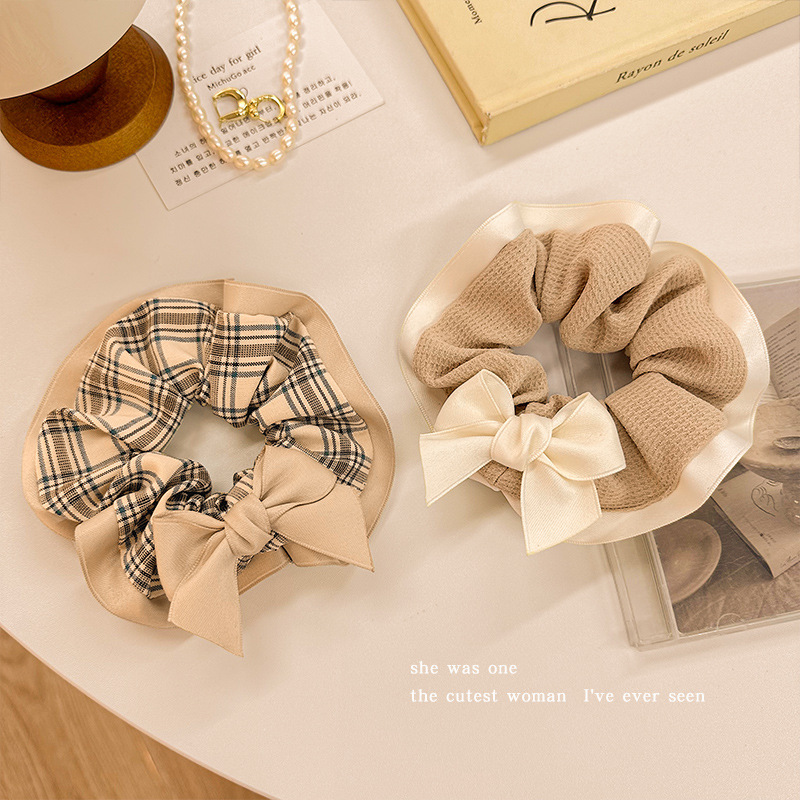한국 우유 카레 컬러 활 머리 밧줄 격자 큰 보끈 달콤한 소녀 발레 스타일 올 매치 헤어 로프 여성