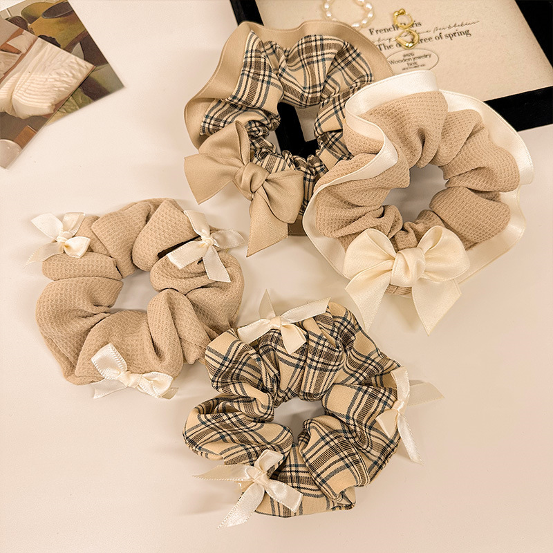 한국 우유 카레 컬러 활 머리 밧줄 격자 큰 보끈 달콤한 소녀 발레 스타일 올 매치 헤어 로프 여성스토어 가기