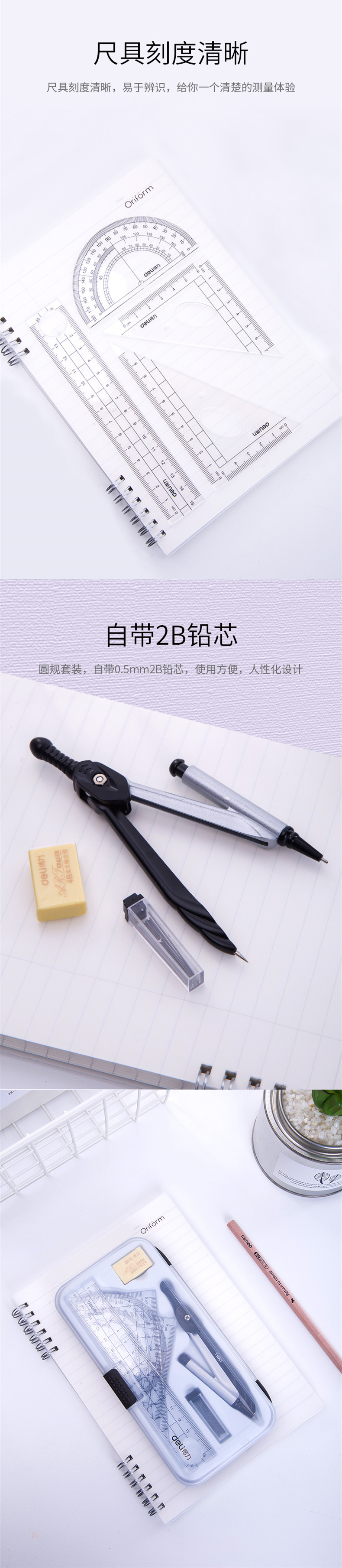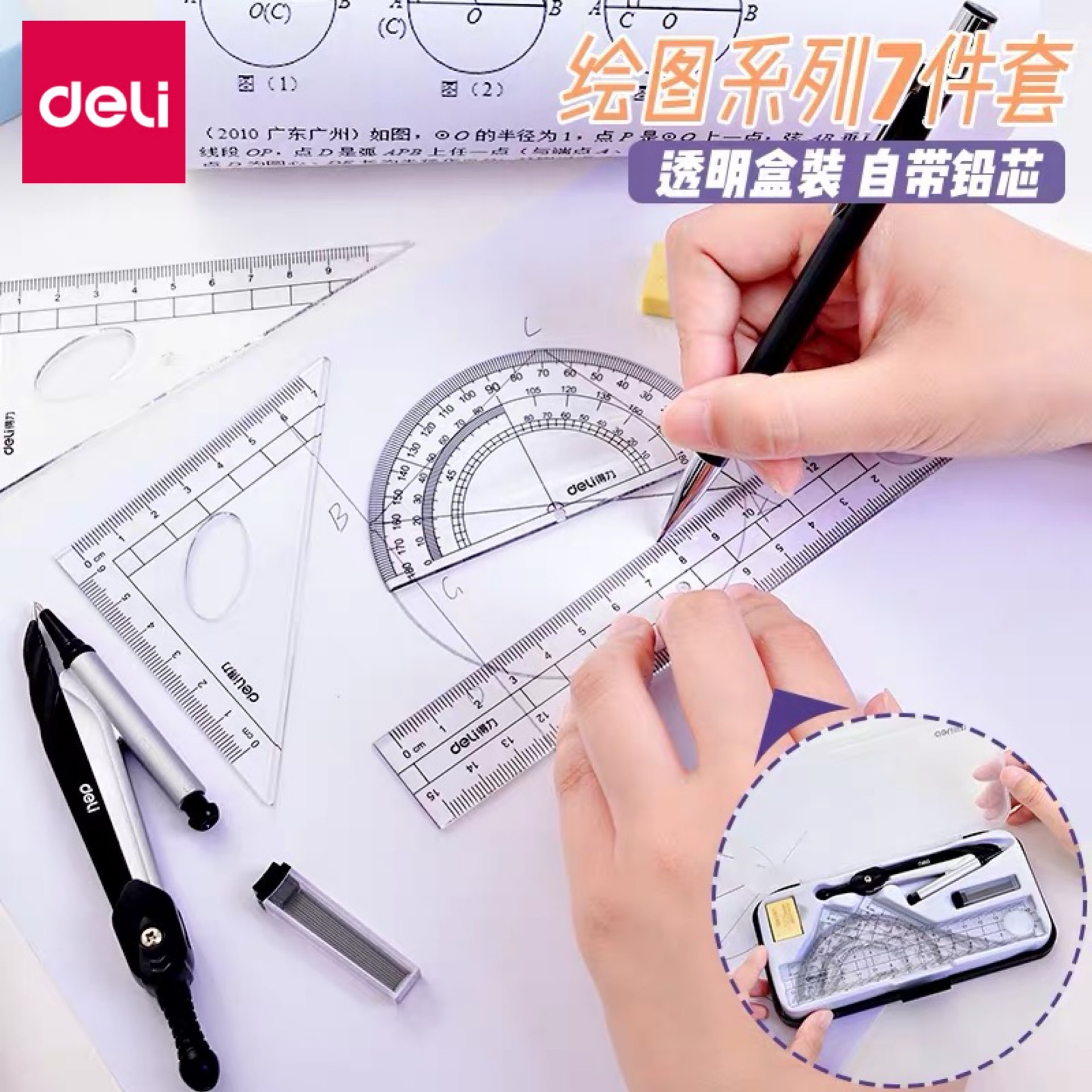 델리 72150 나침반 세트 나침반 통치자 7 조각 세트 학생 다기능 나침반 시험 그리기 도구스토어 가기