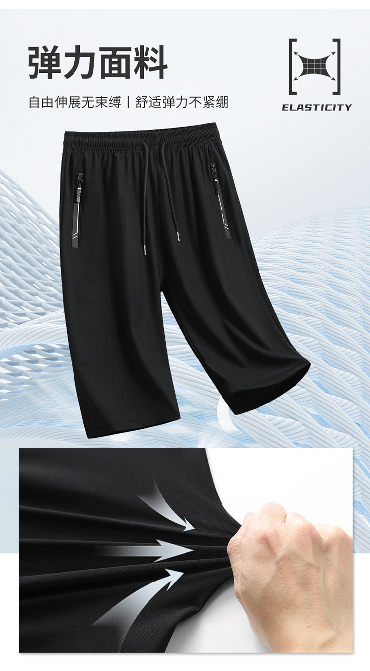 아이스 실크 스트레이트 카프리 바지 남자 여름 얇은 통기성 플러스 사이즈 스포츠 바지 캐주얼 빠른 건조 얇은 카프리 바지