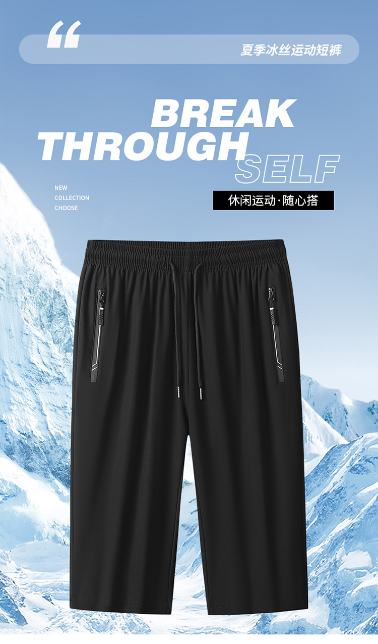아이스 실크 스트레이트 카프리 바지 남자 여름 얇은 통기성 플러스 사이즈 스포츠 바지 캐주얼 빠른 건조 얇은 카프리 바지스토어 가기