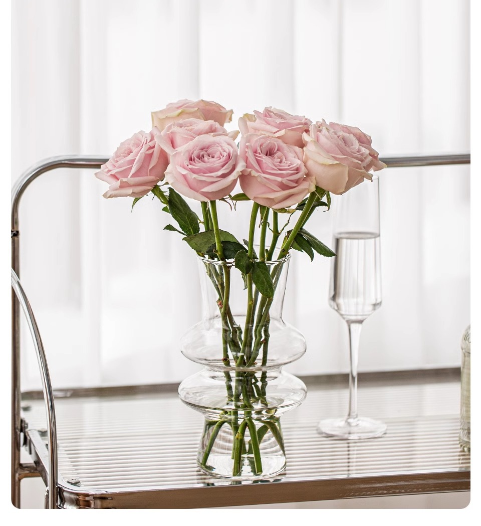 현대 간단한 유리 꽃병 중간 고대 고급 감각 홈 수경 꽃병 내 스타일 높은 외관 가치 작은 장식품