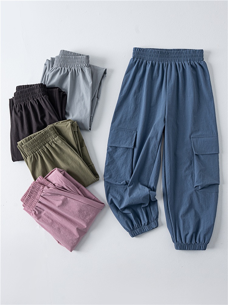 2024 여름 새로운 얇은 어린이 솔리드 컬러 야외 캐주얼 소년 소녀 아기 스포츠 바지 빠른 건조 방지 모기 바지스토어 가기