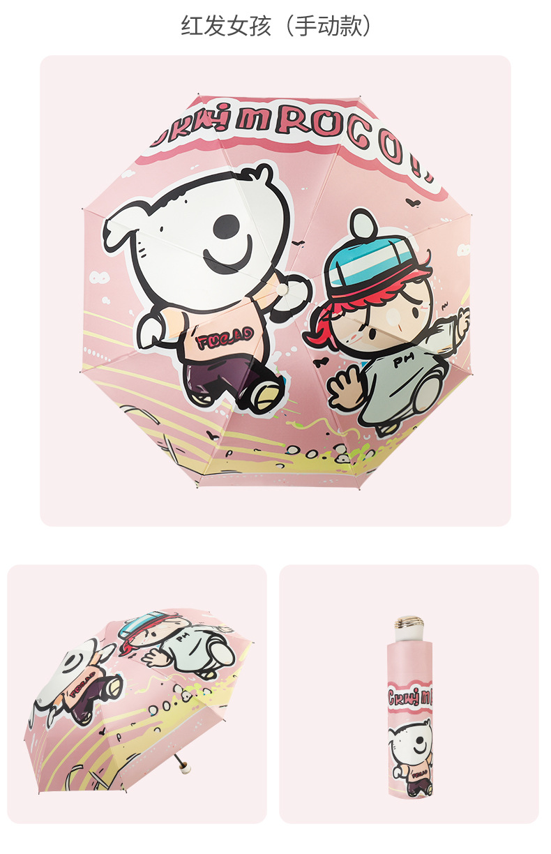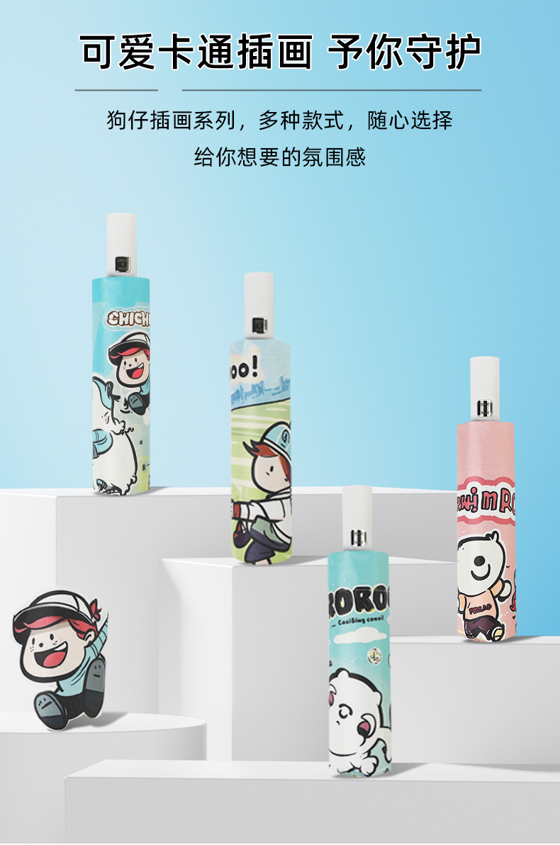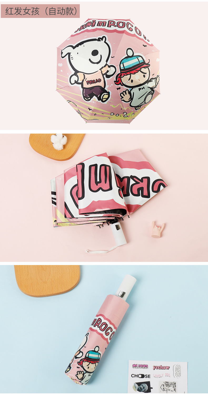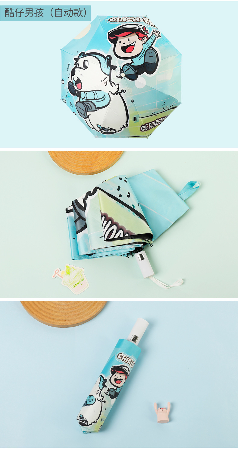 만화 곰돌이 비/햇빛 겸용 자동 전면 블랙 글로스 이중 뼈대 어린이 학생 귀여운 우산 도매스토어 가기