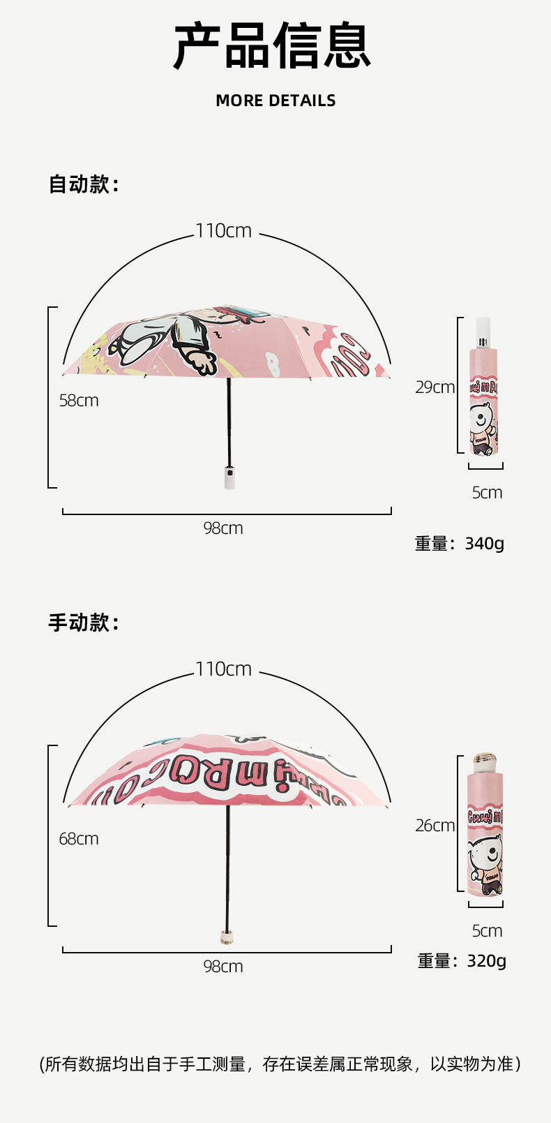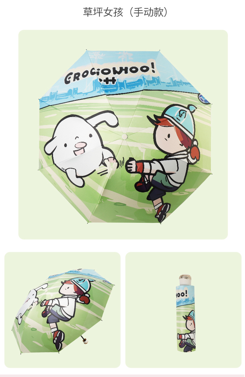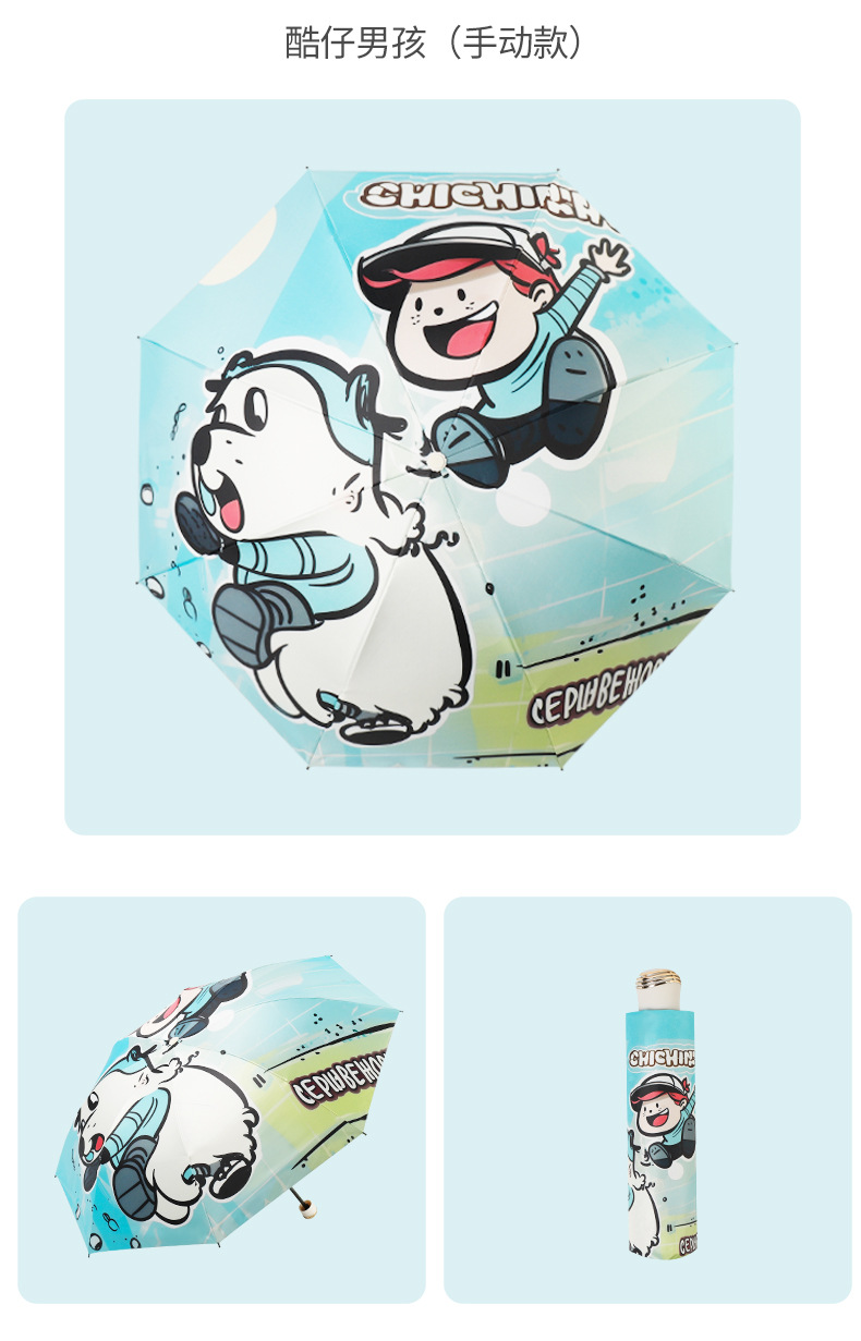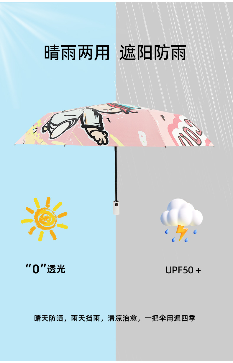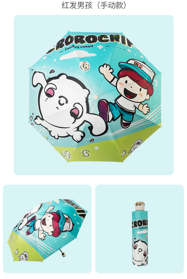 만화 곰돌이 비/햇빛 겸용 자동 전면 블랙 글로스 이중 뼈대 어린이 학생 귀여운 우산 도매스토어 가기