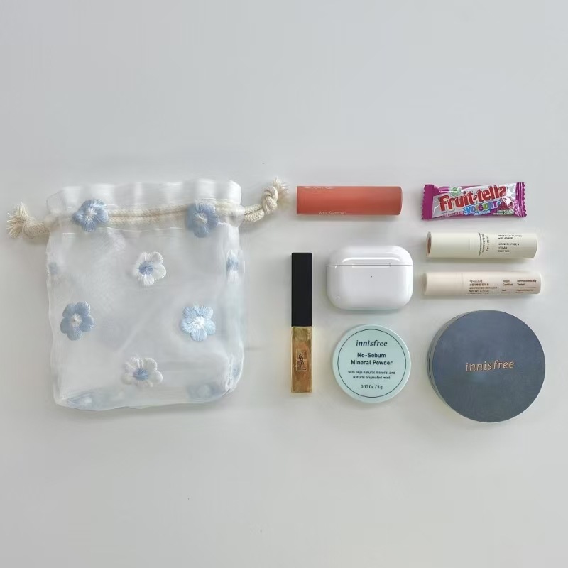 인스 스타일 자수 조임끈 가방, 메이크업 수납 메쉬 가방, 선물 가방, 휴대용 수납 가방, 여행용 수납 가방
