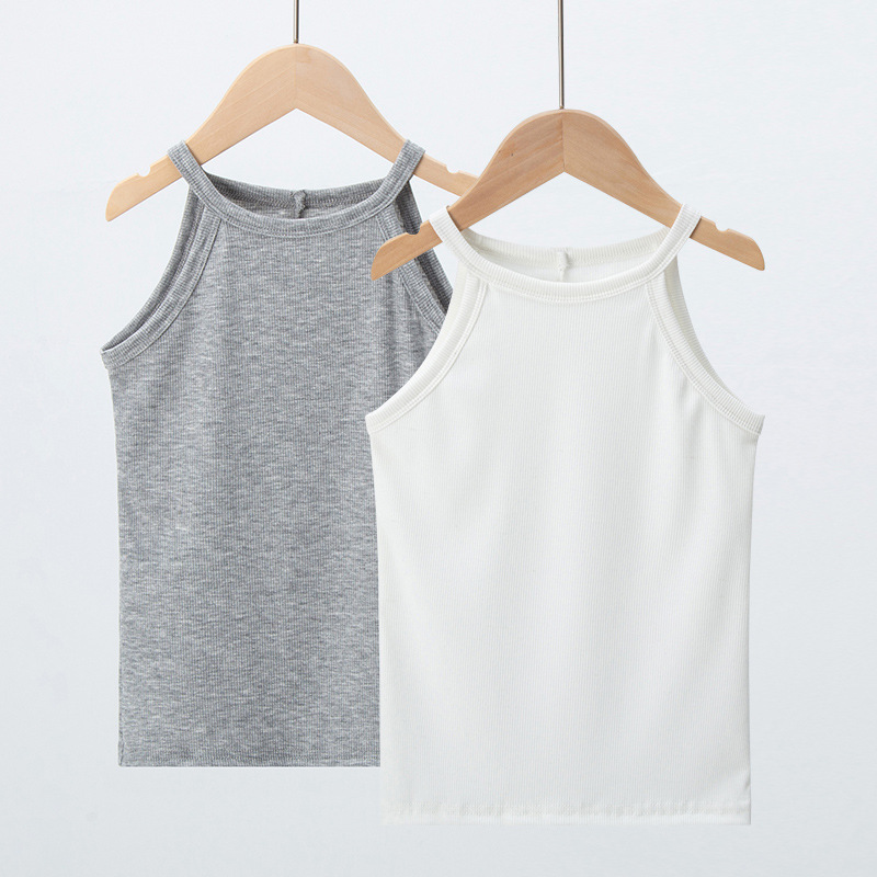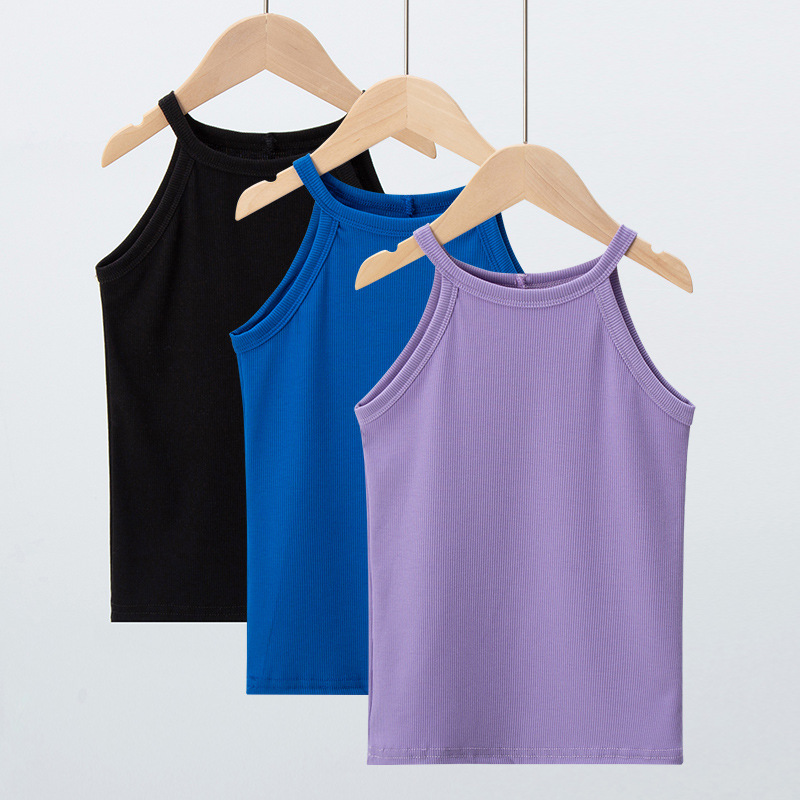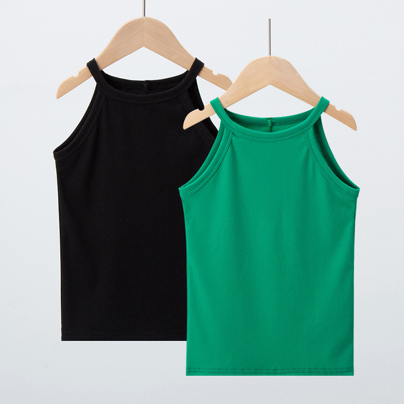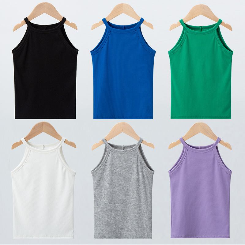 국경 새로운 어린이 여름 솔리드 컬러 캐미솔 봄, 가을 바닥 셔츠 아기 소녀 민소매 탑 코튼스토어 가기