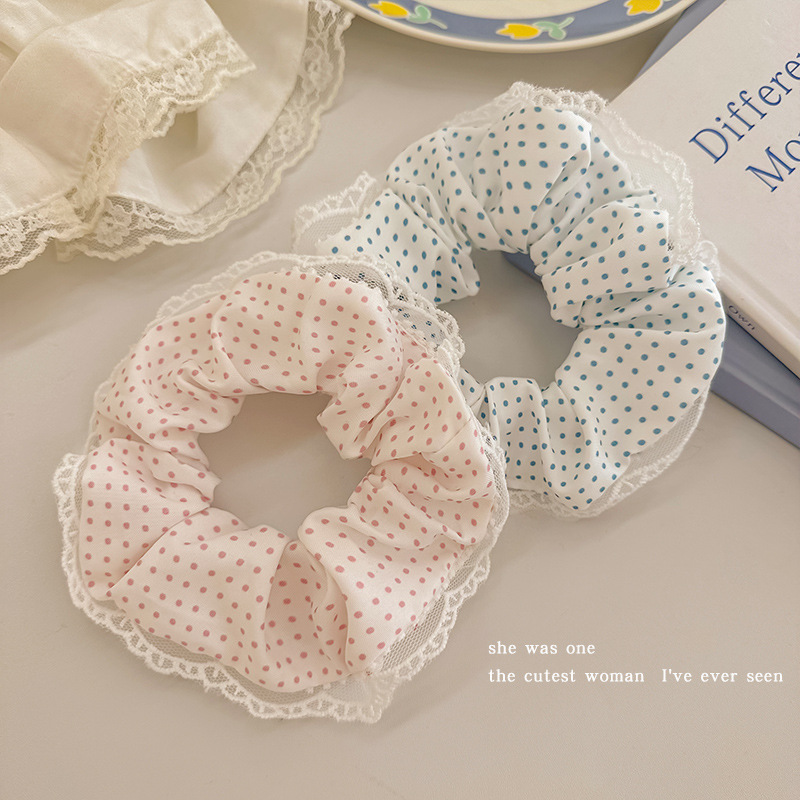슈퍼 페어리 레이스 웨이브 도트 대형 Intestine 헤어 링 여성 볼 헤드 타이 헤어 로프 달콤한 귀여운 헤드 로프 올 매치 헤드웨어 고무 텐돈스토어 가기