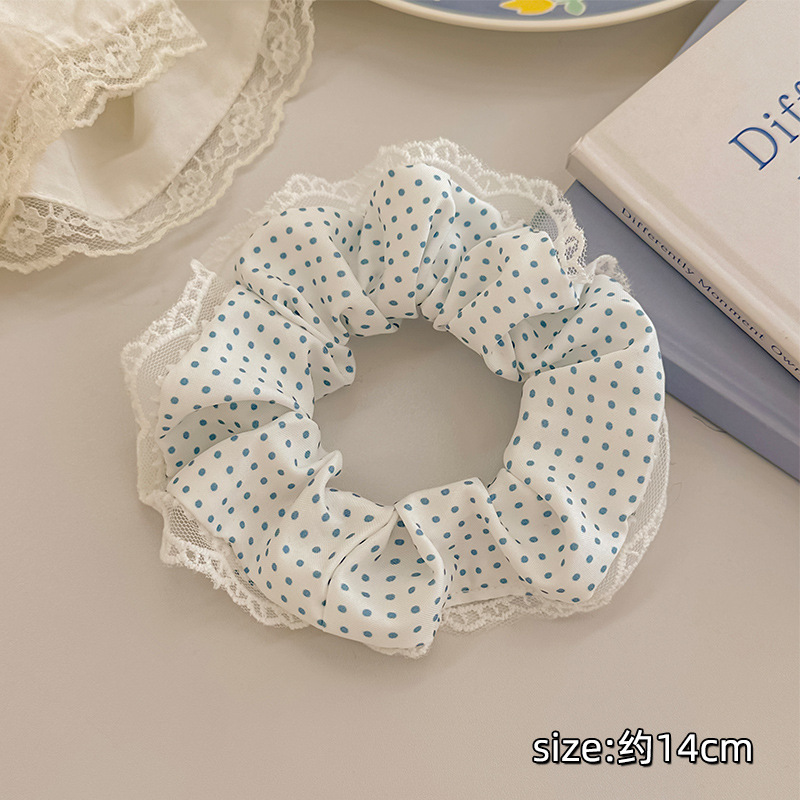 슈퍼 페어리 레이스 웨이브 도트 대형 Intestine 헤어 링 여성 볼 헤드 타이 헤어 로프 달콤한 귀여운 헤드 로프 올 매치 헤드웨어 고무 텐돈