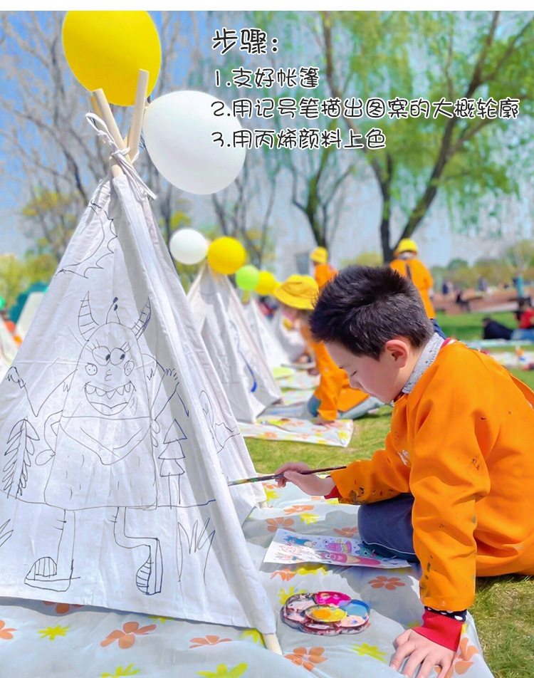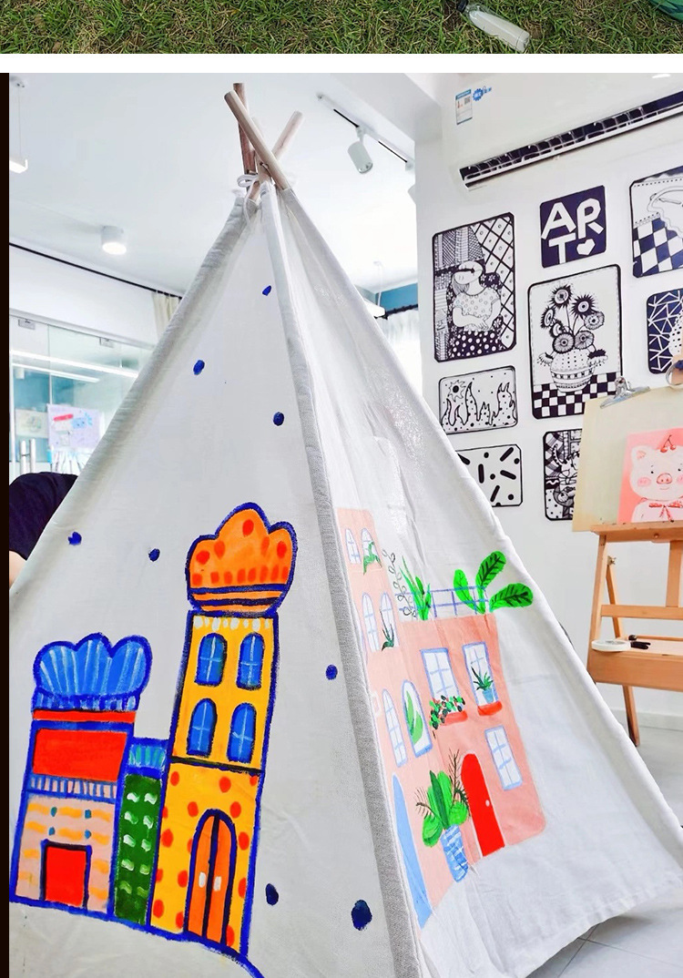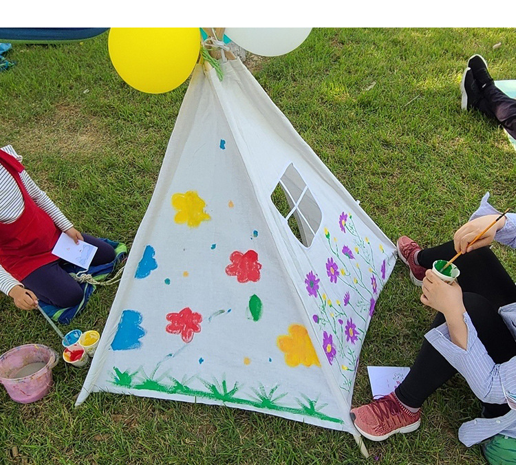 어린이 손으로 그린 텐트 수제 DIY 낙서 재료 유치원 야외 삼각형 작은 텐트 페인트 원단스토어 가기
