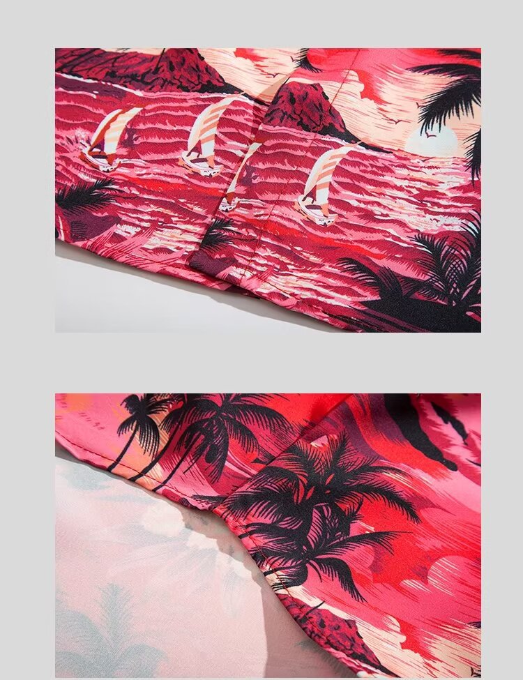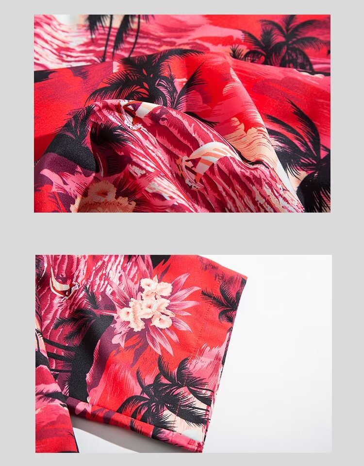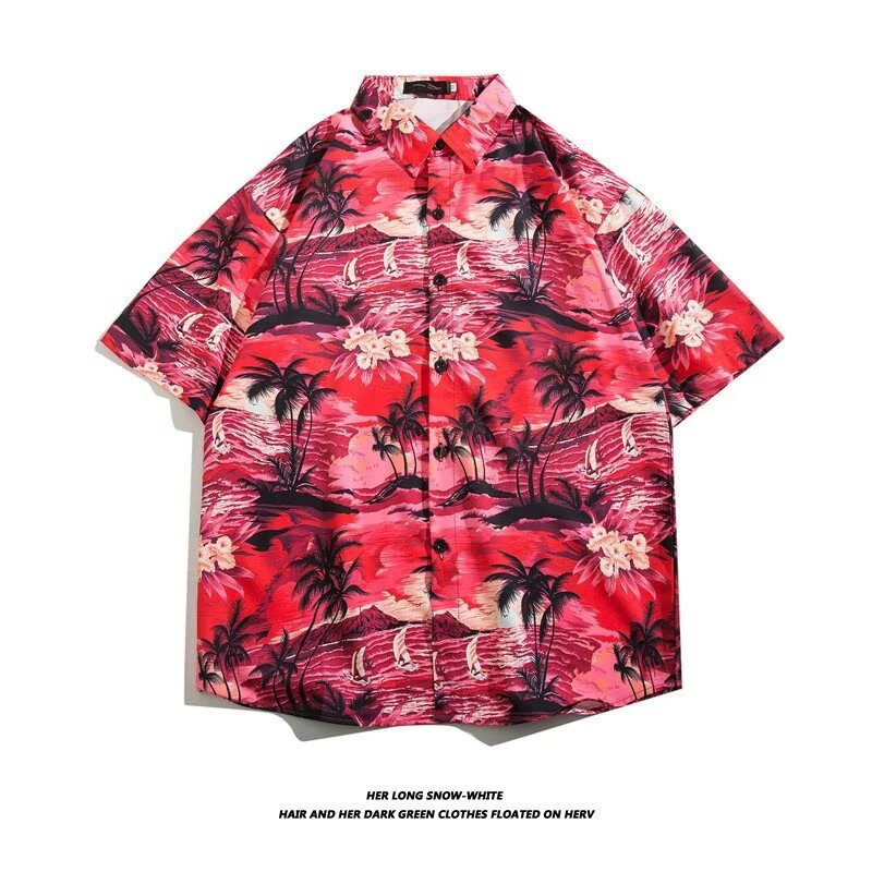 하와이 비치 셔츠 남자 반팔 여름 산야 해변 휴가 남자 타이 스타일 레트로 홍콩 스타일 꽃 셔츠
