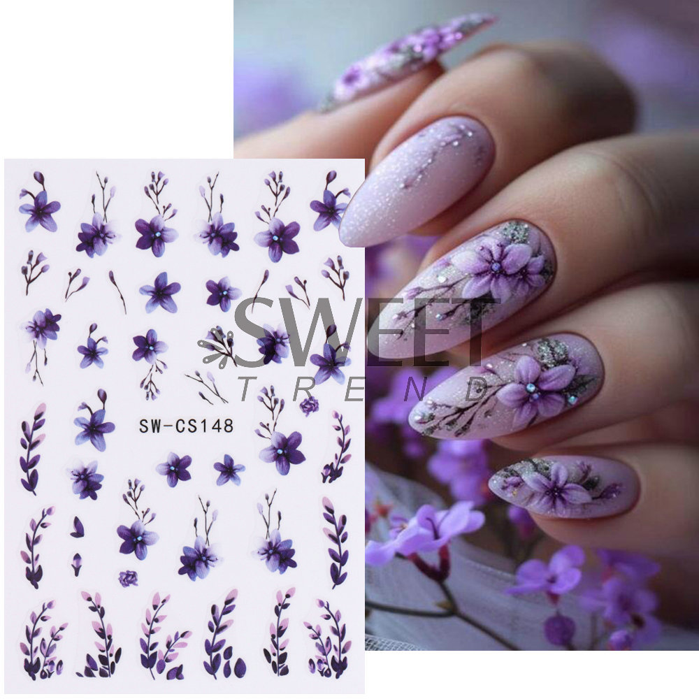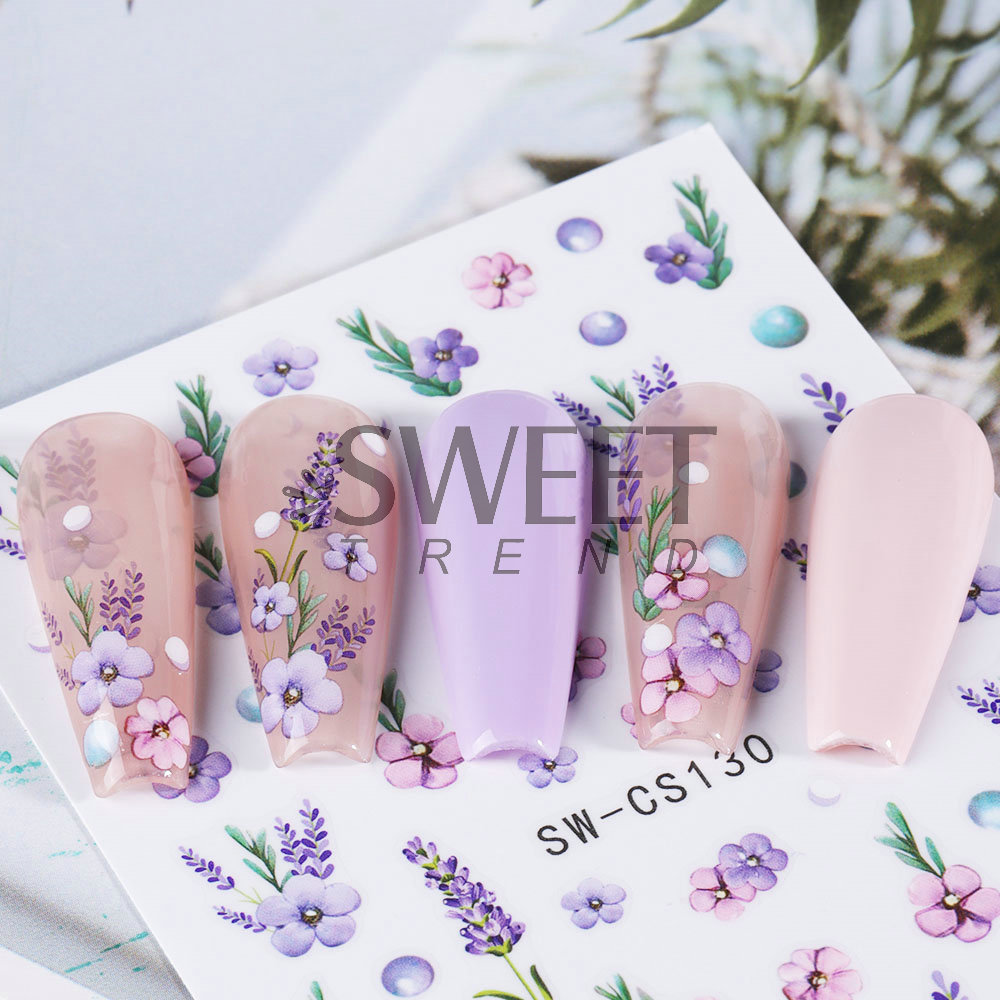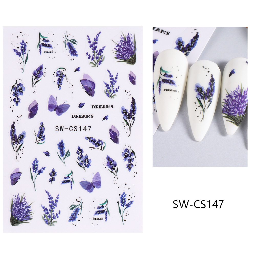 국경 간 새로운 네일 아트 스티커 봄과 여름 3D 복고풍 꽃 보라색 튤립 나비 방수 접착 네일 스티커스토어 가기