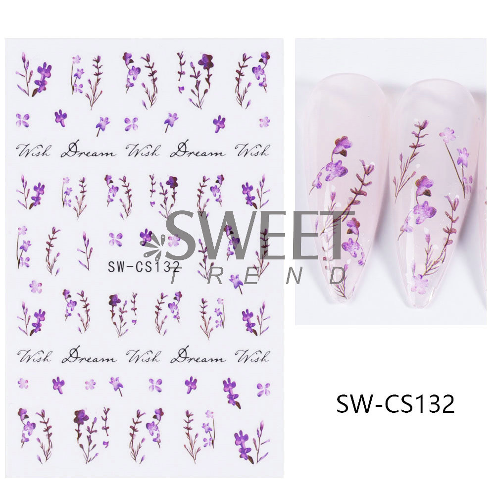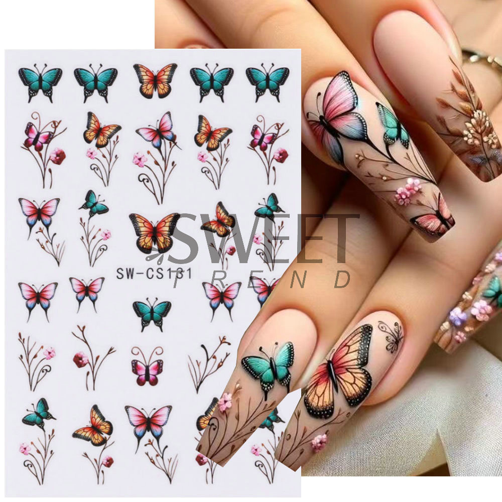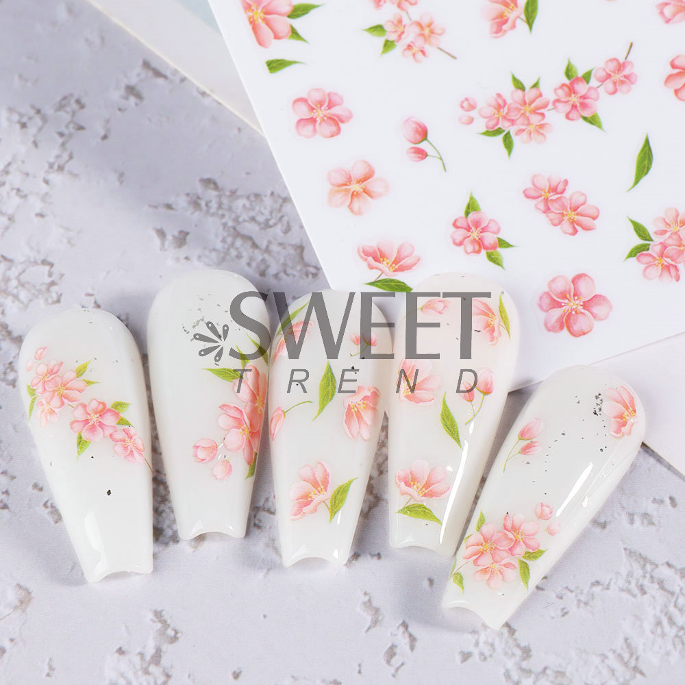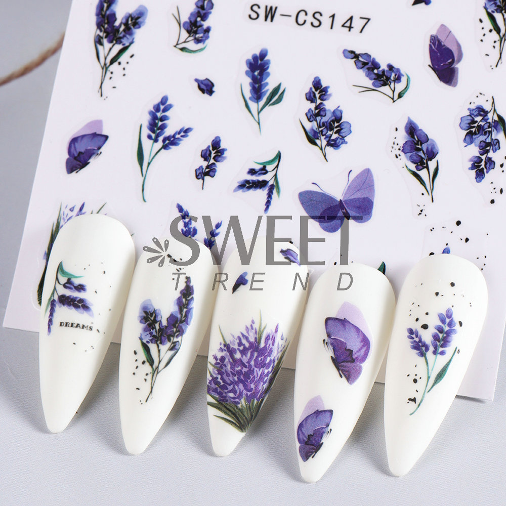 국경 간 새로운 네일 아트 스티커 봄과 여름 3D 복고풍 꽃 보라색 튤립 나비 방수 접착 네일 스티커