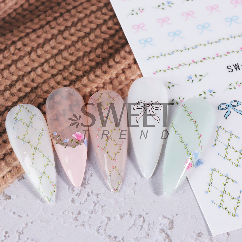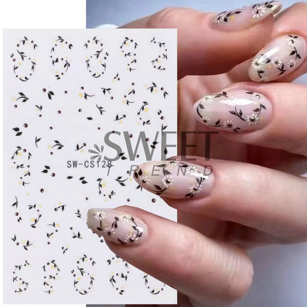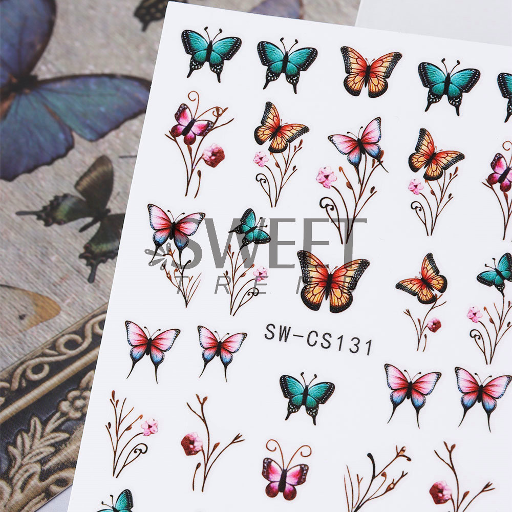 국경 간 새로운 네일 아트 스티커 봄과 여름 3D 복고풍 꽃 보라색 튤립 나비 방수 접착 네일 스티커