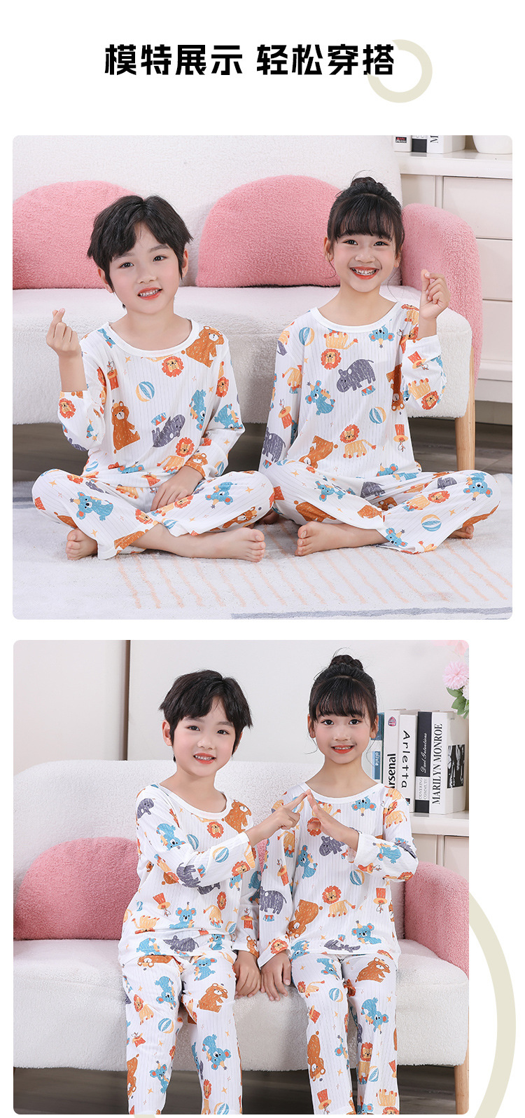 어린이 긴팔 홈 의류 세트 남자와 여자 잠옷 세트 여자 여름 에어컨 의류 통기성 핏 스트립