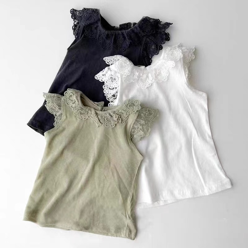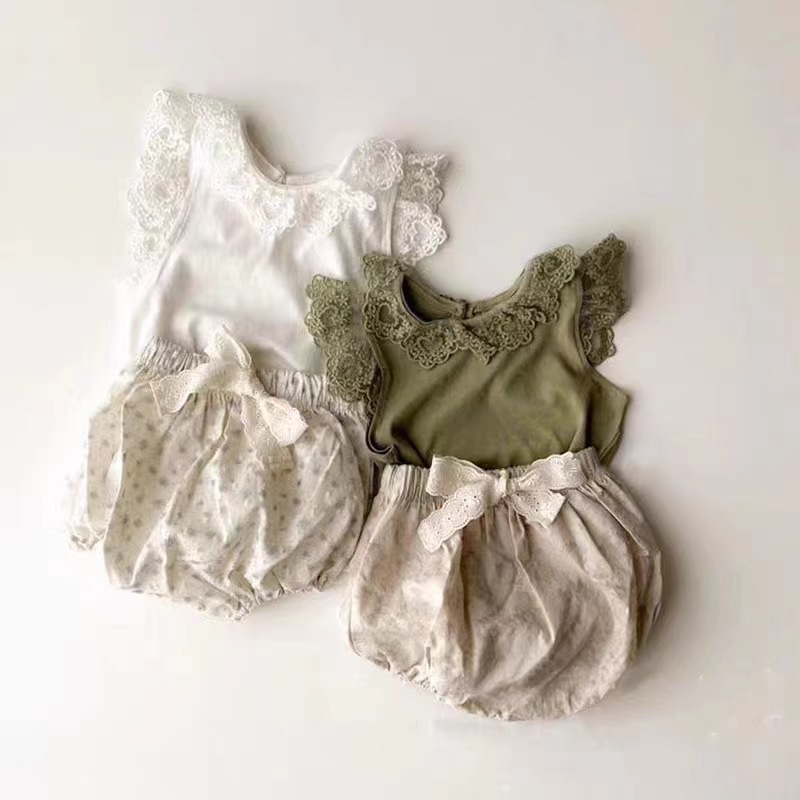 아기 여름 세트 한국 레이스 비행 소매 조끼 서양식 꽃 큰 PP 바지 얇은 아기 여름 투피스 세트