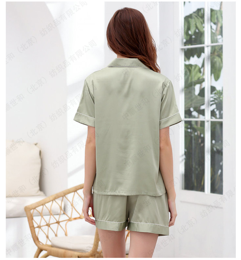 유럽 및 미국 여성용 신상품 잠옷 반팔 반바지 실크 느낌 카디건 라펠 잠옷 세트 도매스토어 가기