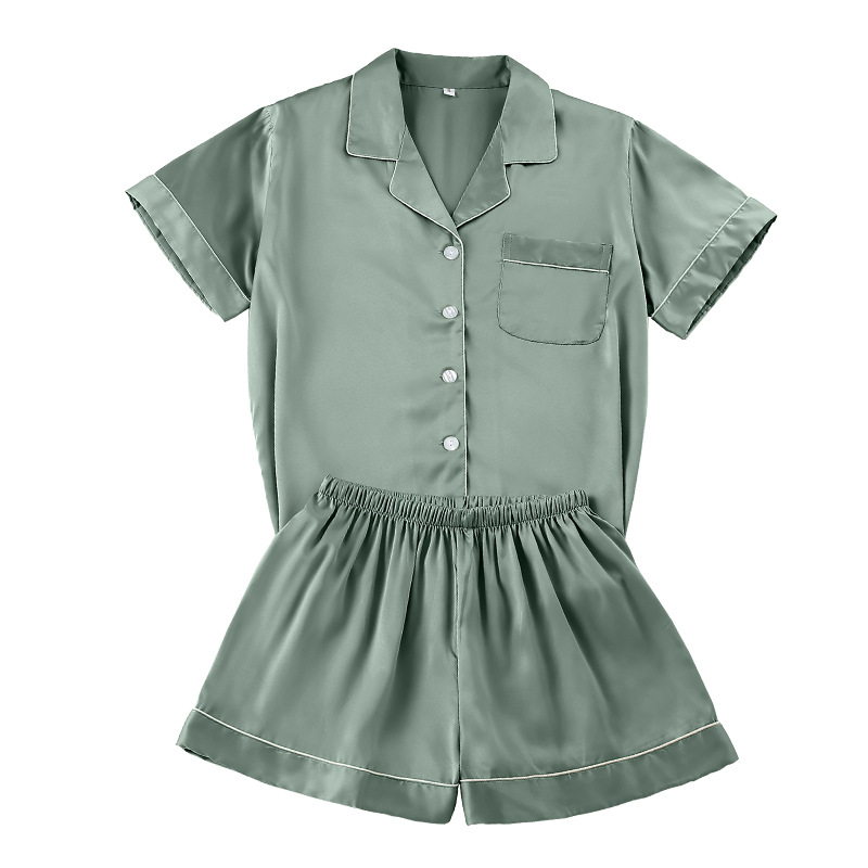 유럽 및 미국 여성용 신상품 잠옷 반팔 반바지 실크 느낌 카디건 라펠 잠옷 세트 도매