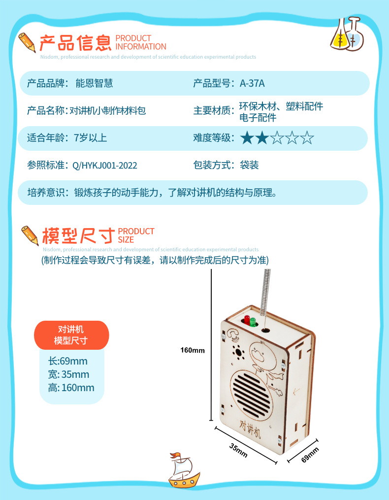 과학 기술 소규모 생산 인터콤 초등 및 중등 학교 학생 DIY 제조업체 작은 발명 과학 실험 교육 지원 모델 재료 패키지