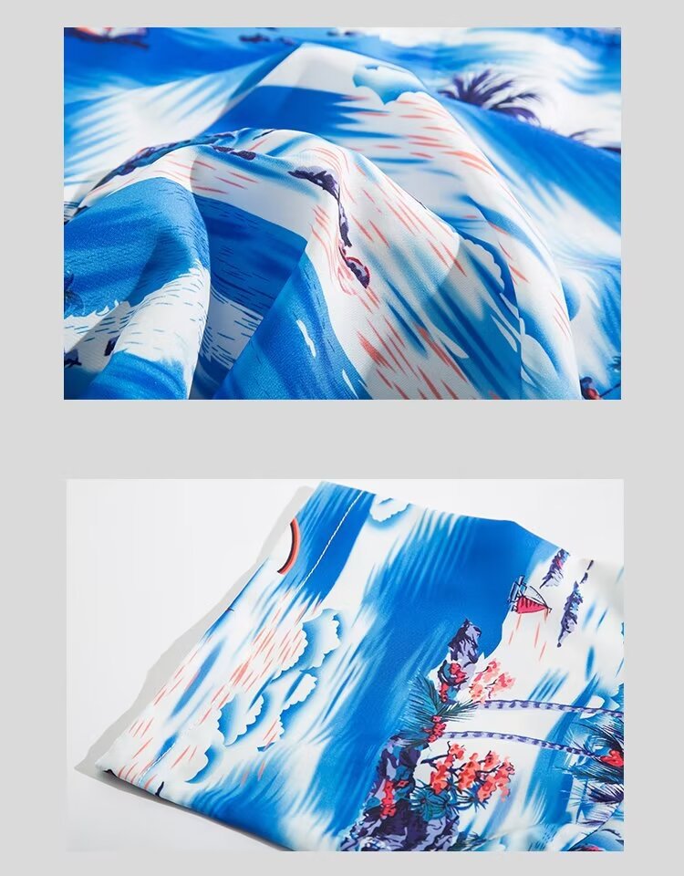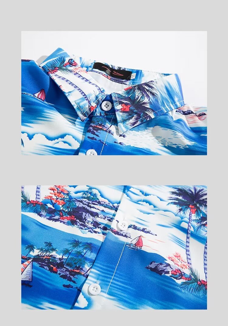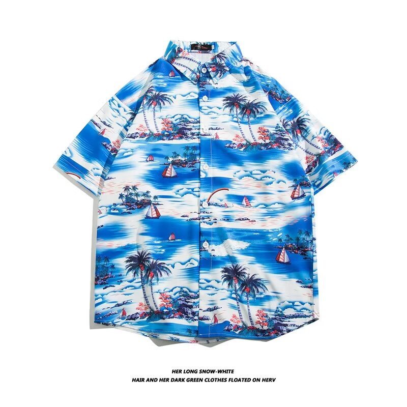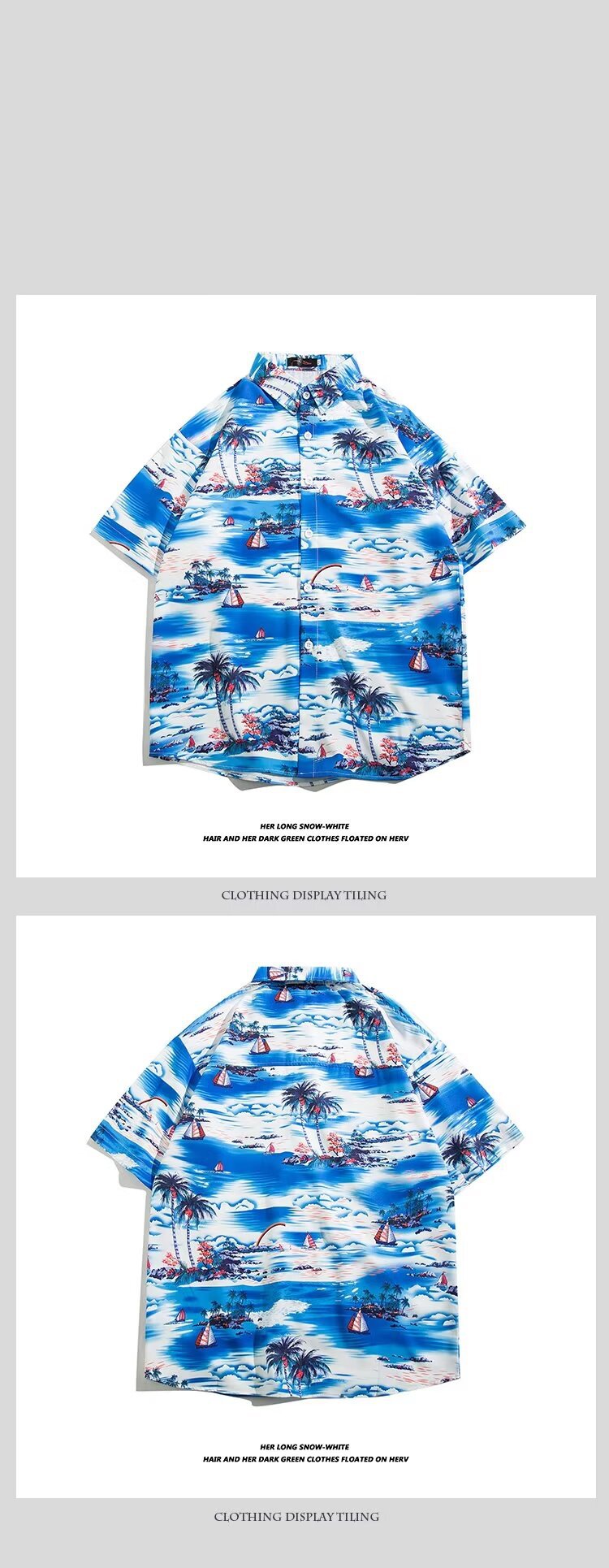 하와이 비치 셔츠 남자 반팔 여름 산야 해변 휴가 남자 타이 스타일 레트로 홍콩 스타일 꽃 셔츠스토어 가기