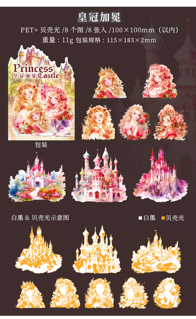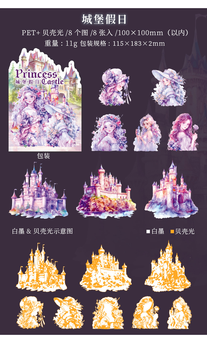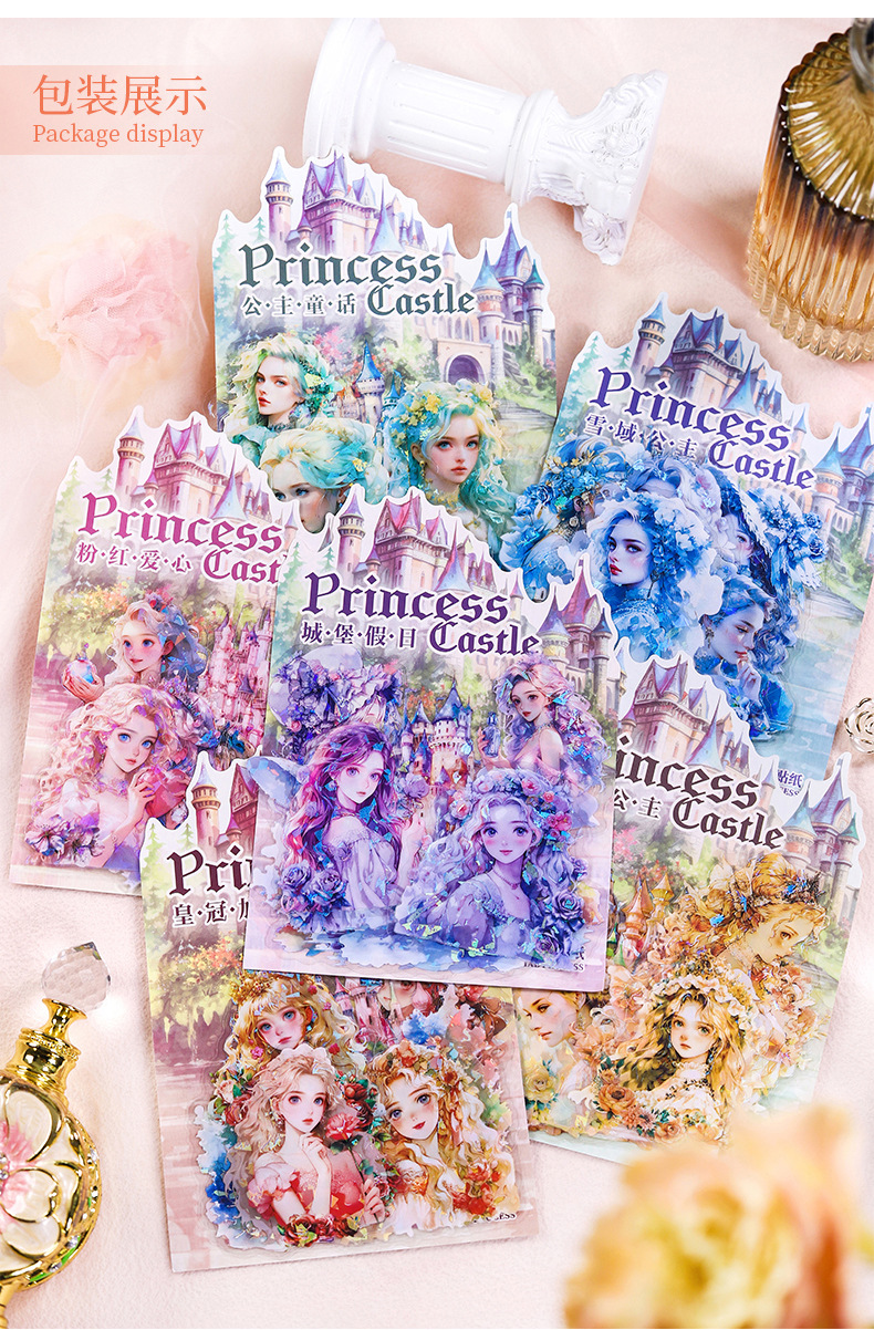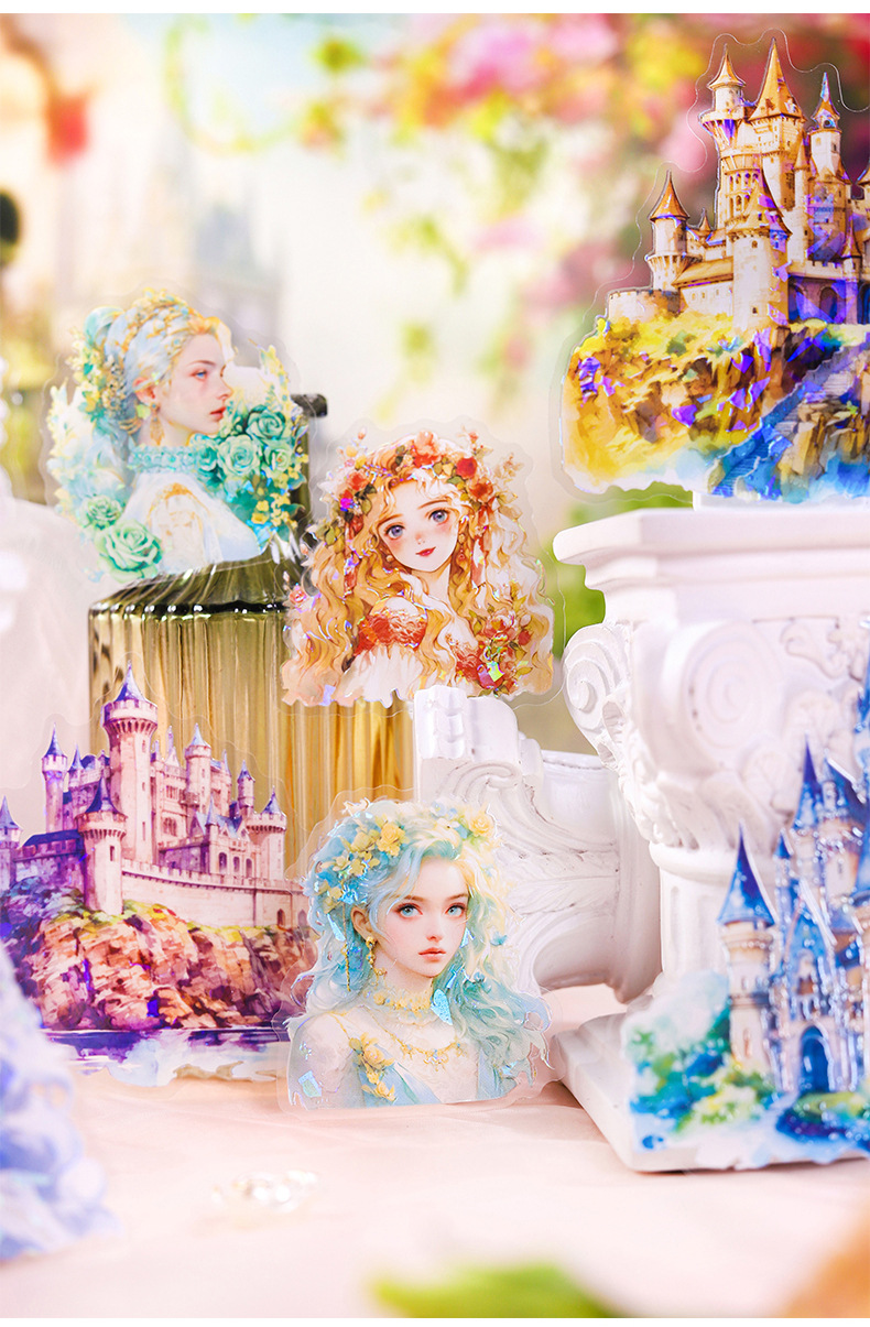 아름다운 날 스티커 공주 성 시리즈 쉘 라이트 핸드 계정 재료 장식 콜라주 베이스 스티커 6