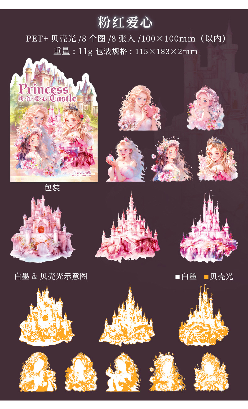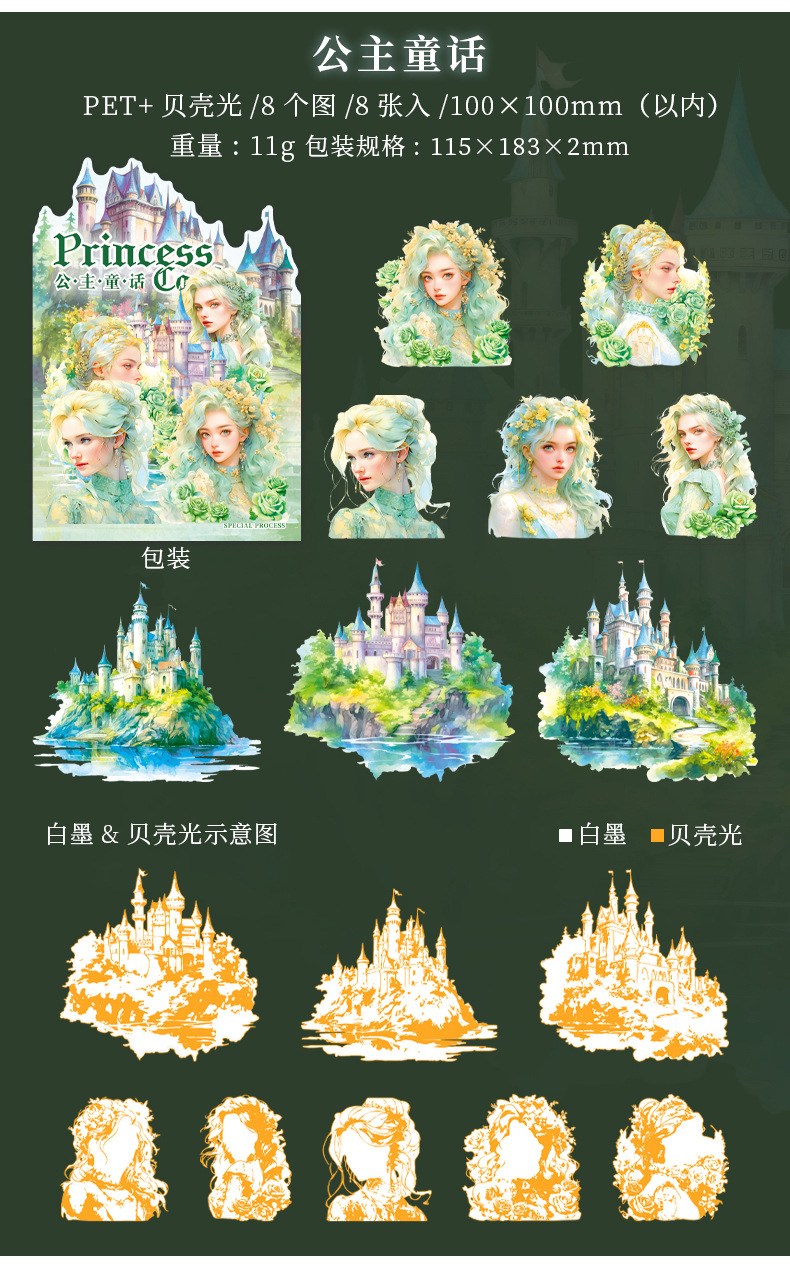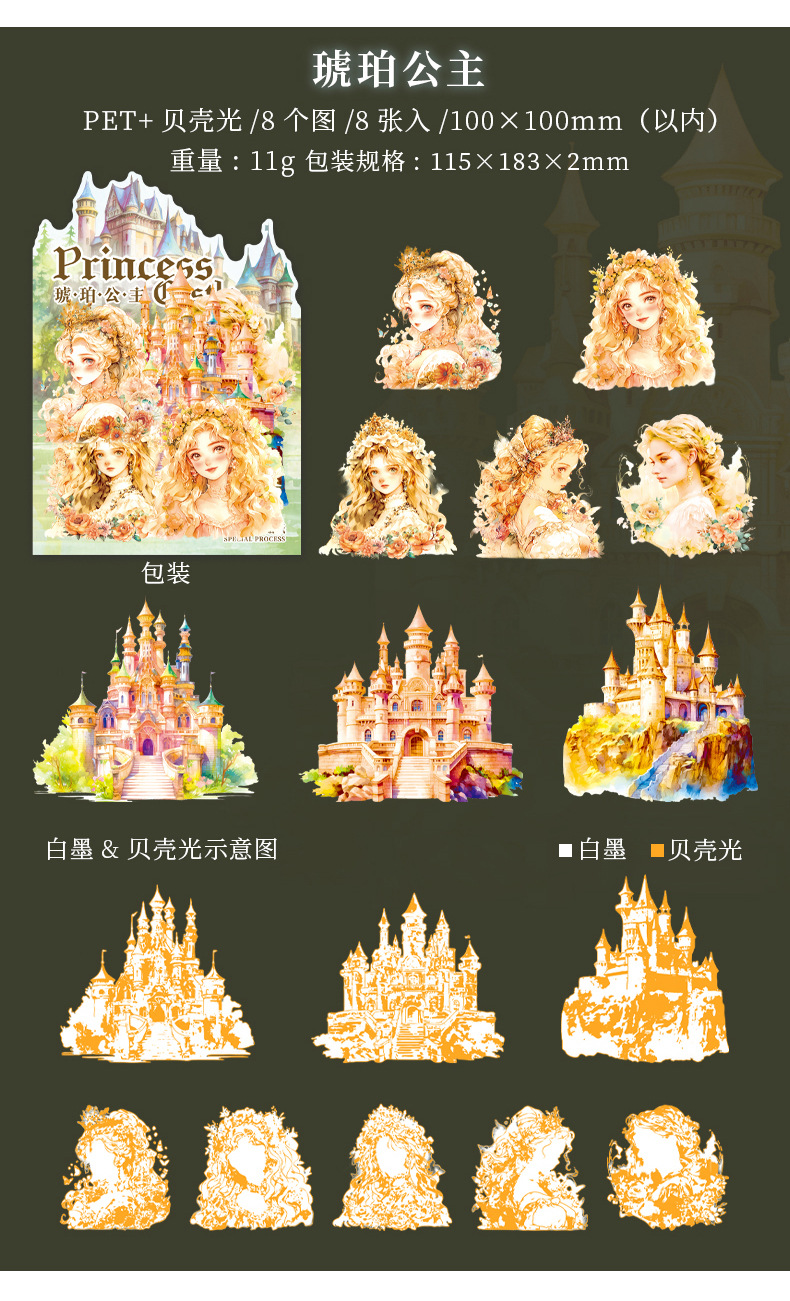 아름다운 날 스티커 공주 성 시리즈 쉘 라이트 핸드 계정 재료 장식 콜라주 베이스 스티커 6