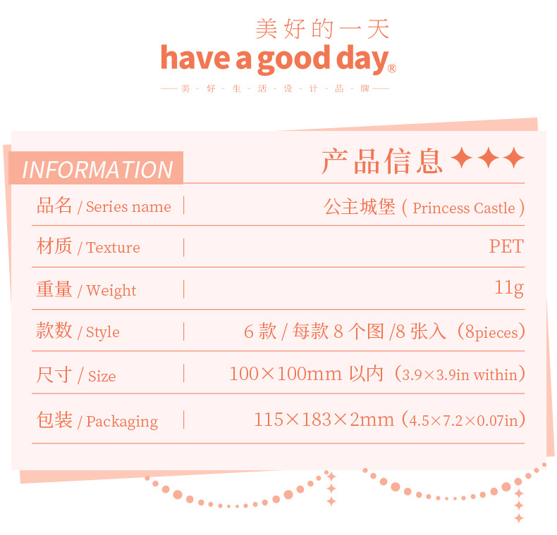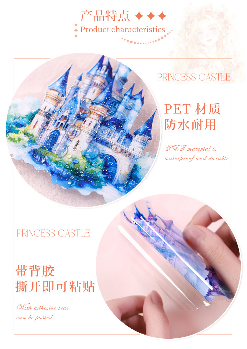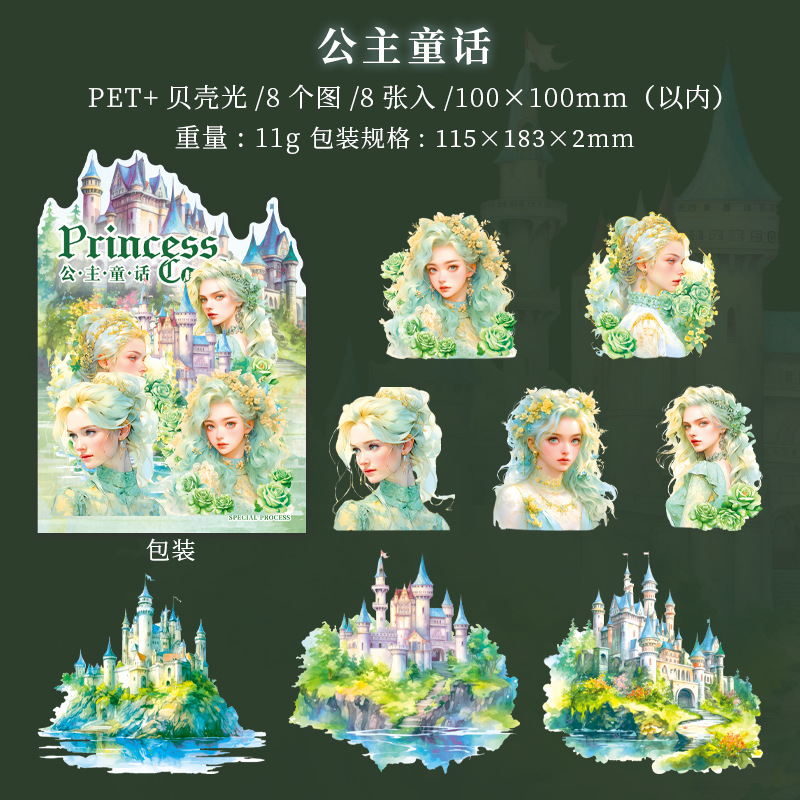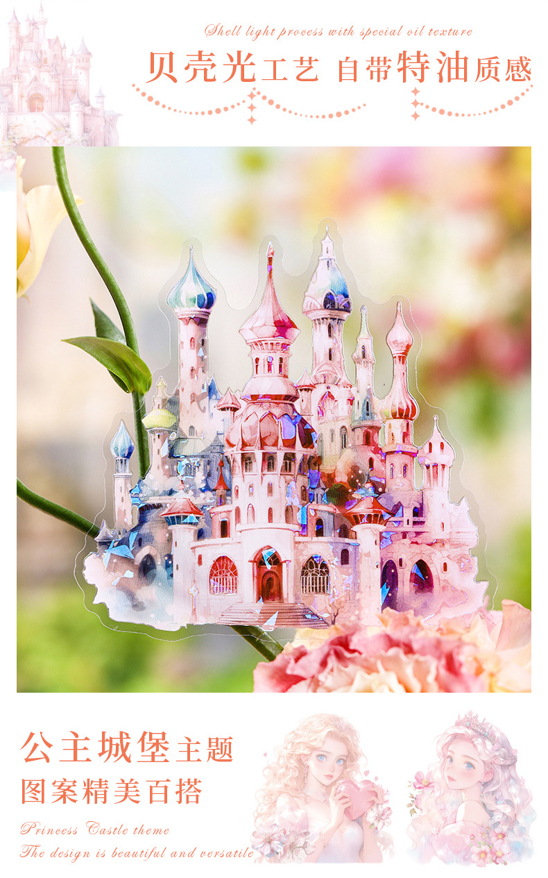 아름다운 날 스티커 공주 성 시리즈 쉘 라이트 핸드 계정 재료 장식 콜라주 베이스 스티커 6스토어 가기