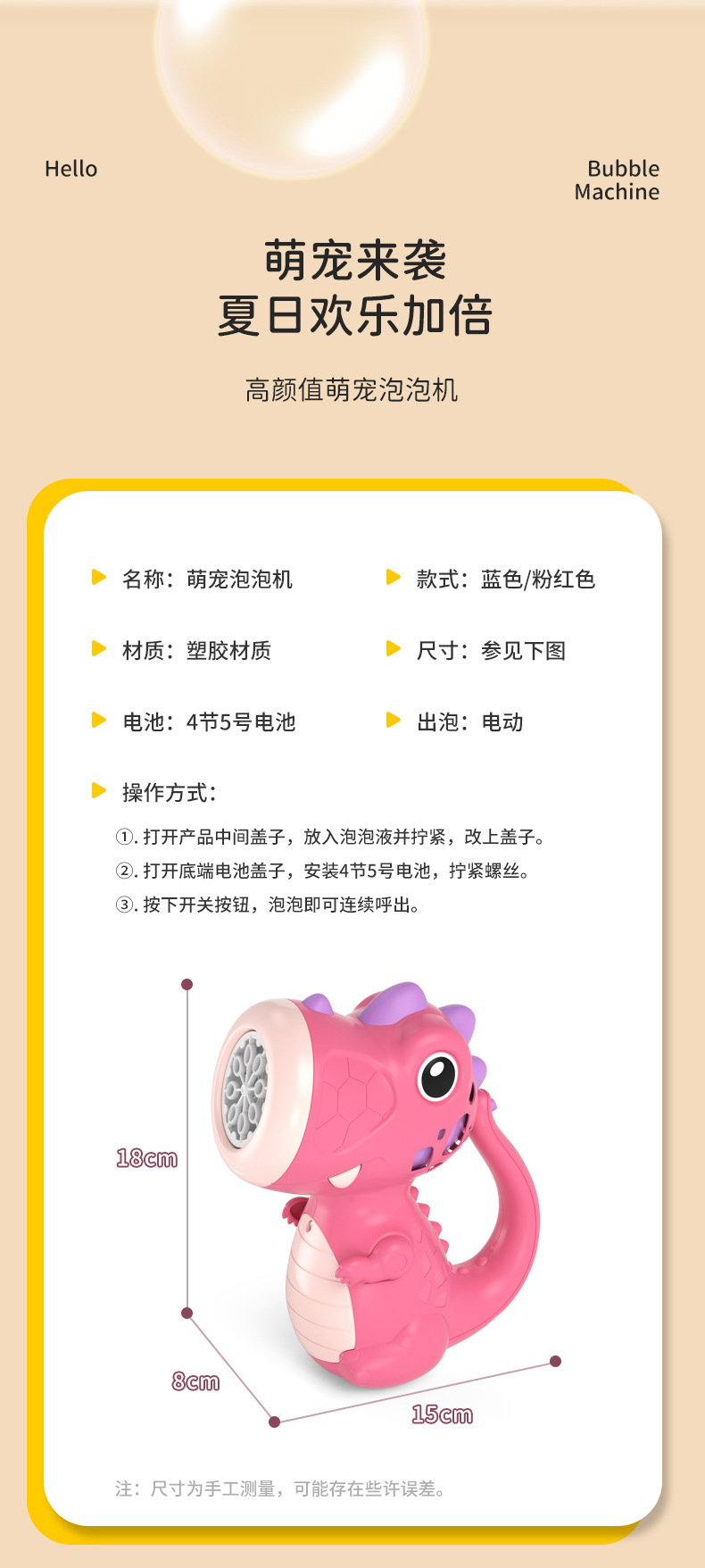 PP013声光恐龙泡泡机:密盒