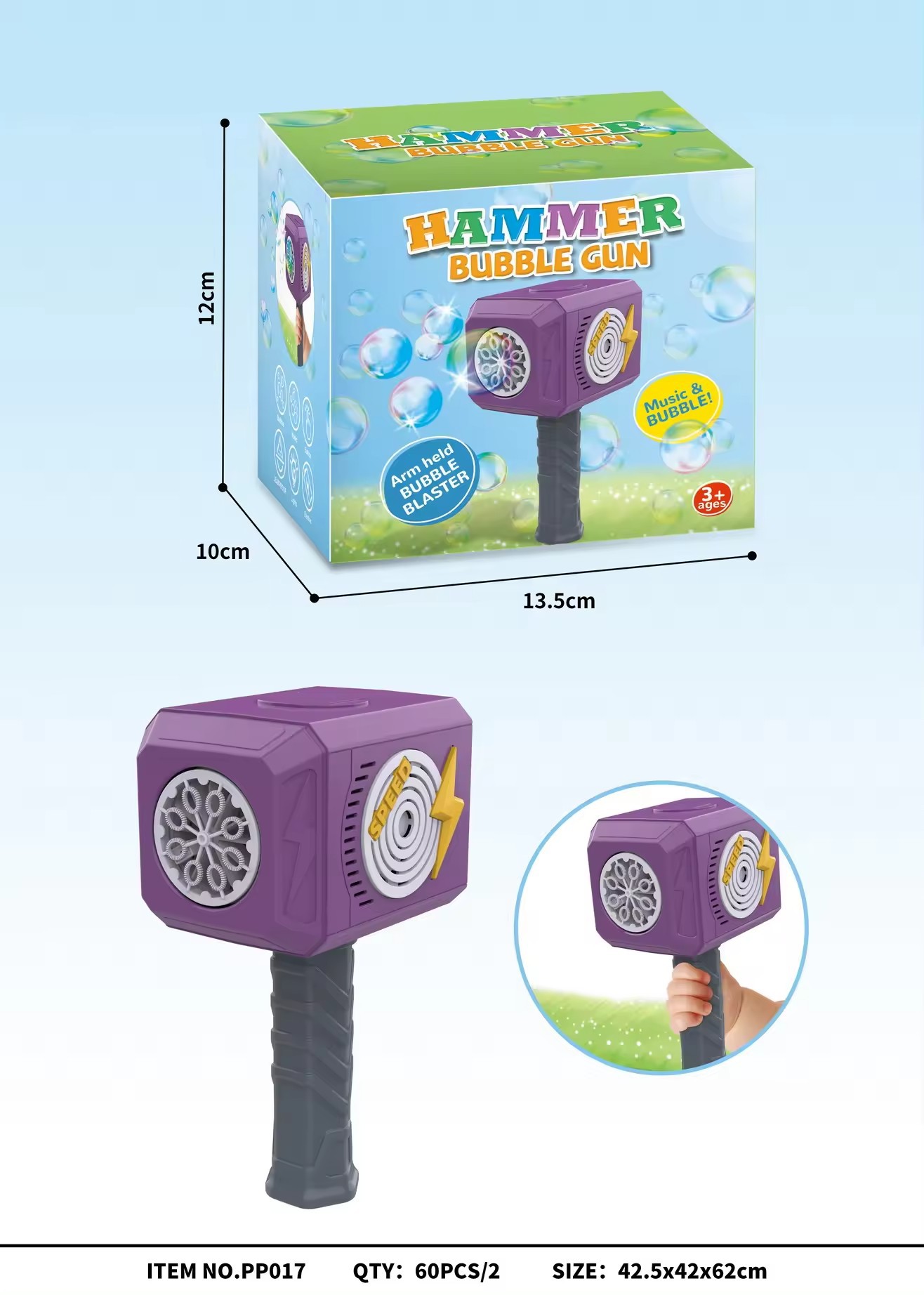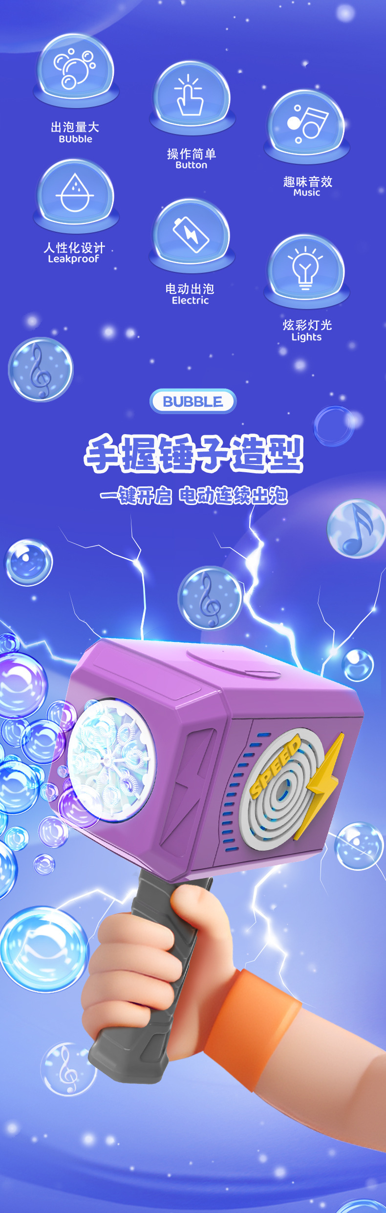 PP017声光锤子泡泡机:密盒
