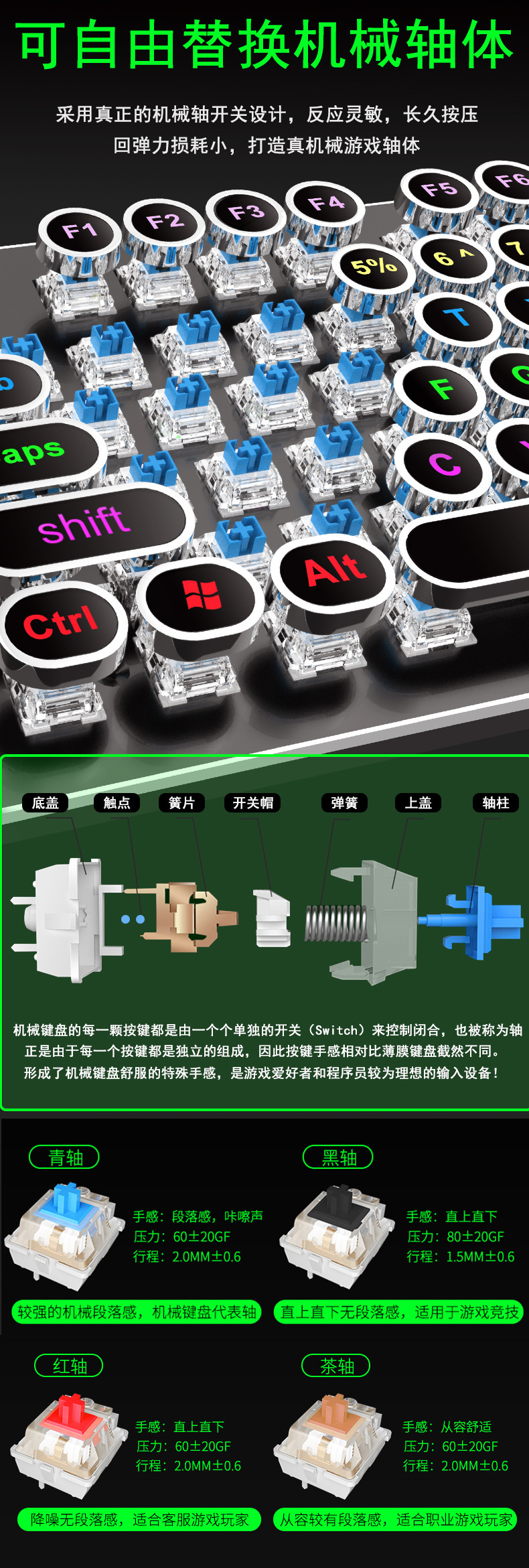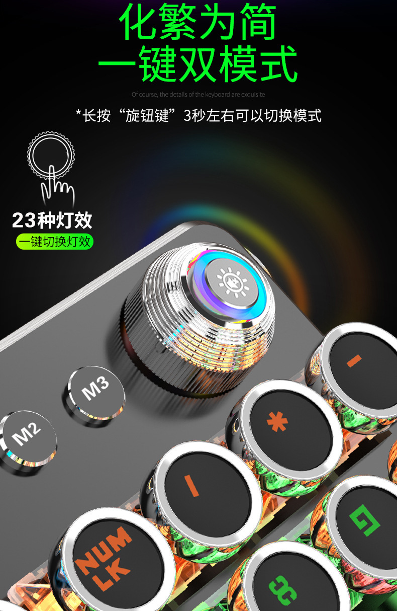 국경 간 직접 공급 K820 레트로 펑크 전기 도금 노브 빛나는 유선 기계 키보드 플러그 그린 샤프트 컴퓨터 게임스토어 가기