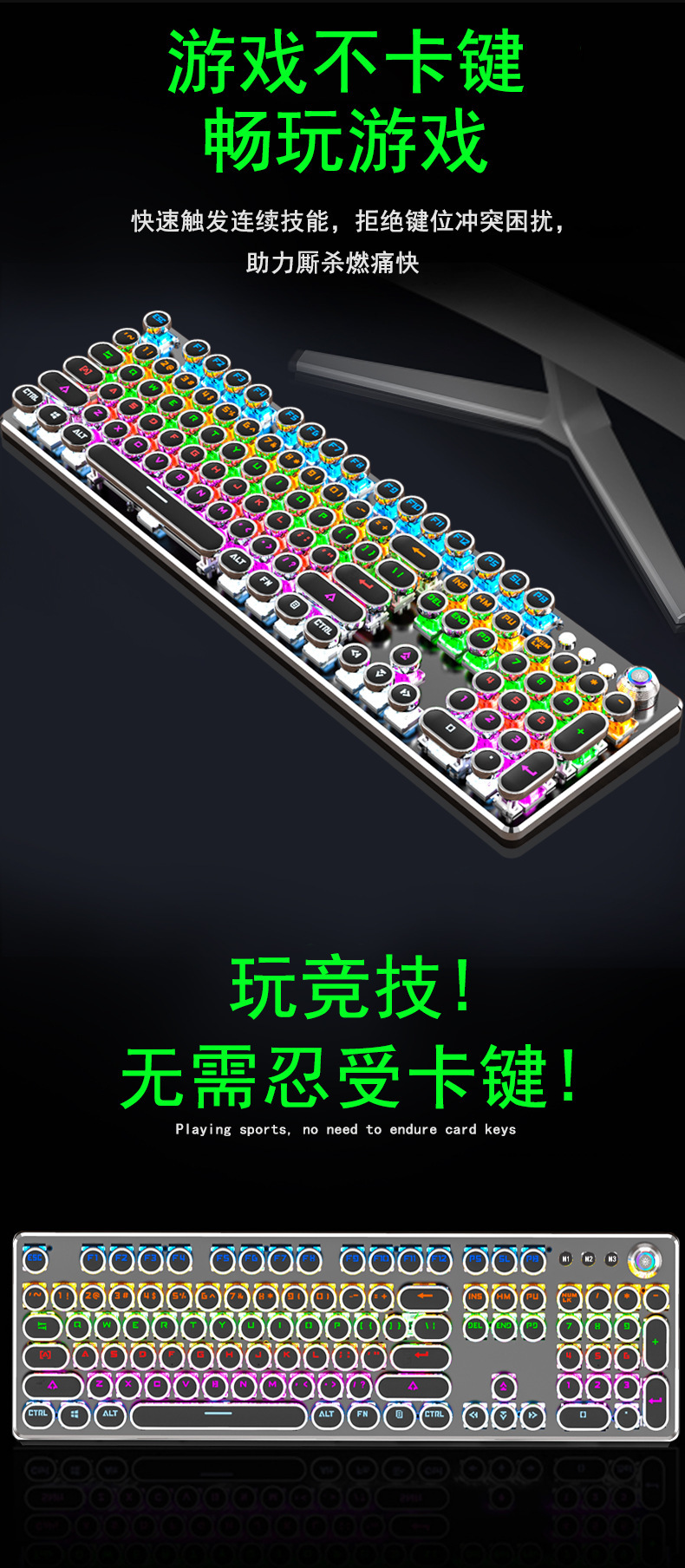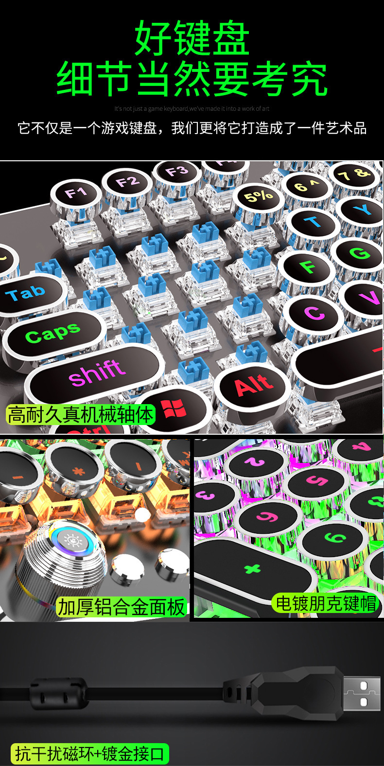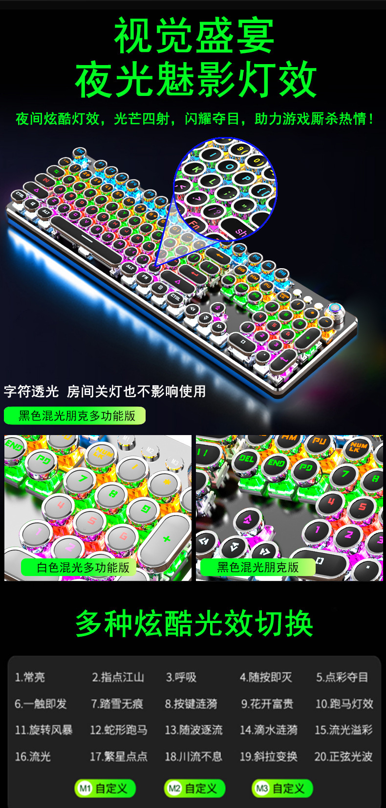 국경 간 직접 공급 K820 레트로 펑크 전기 도금 노브 빛나는 유선 기계 키보드 플러그 그린 샤프트 컴퓨터 게임