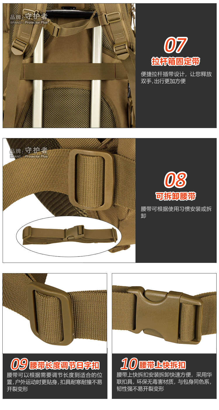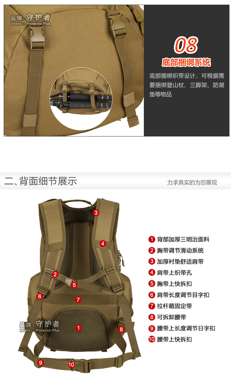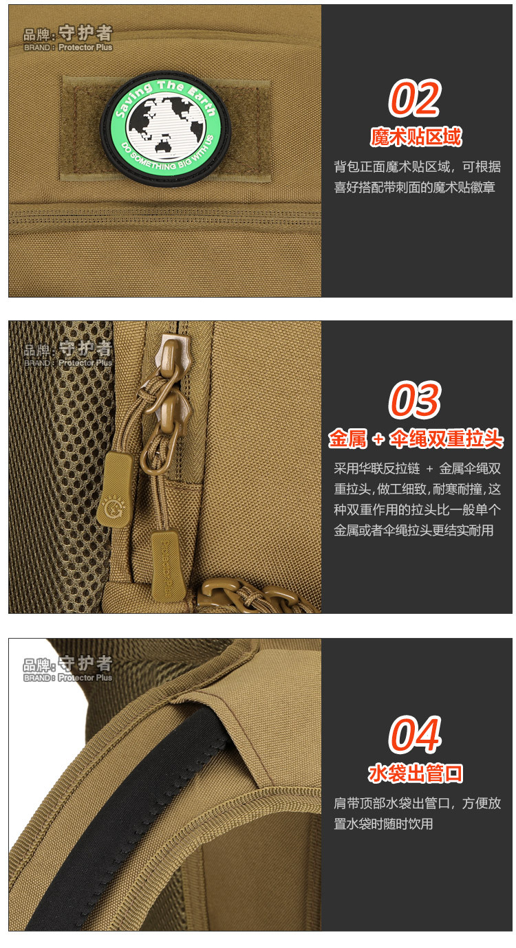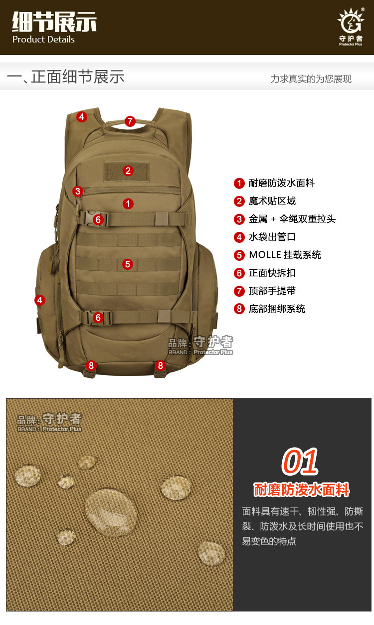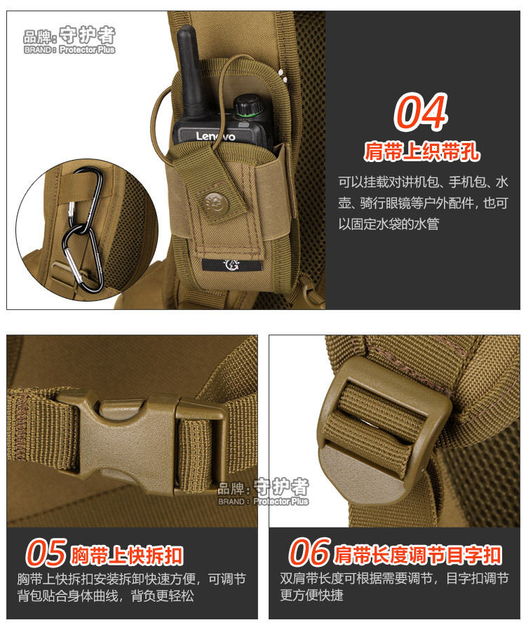 守护者箱包厂是一家专业设计、生产、销售户外背包、腰包、胸包、斜挎包、腰带、背心等产品的诚信经营商家。守护者箱包厂拥有完整、科学的质量管理体系。自设有生产工厂,多名老员工在户外产品领域有着丰富的设计、生产经验,所有材料和配件均质量上乘符合相关标准,我们秉承专业敬业的精神,为客户提供好的产品和服务等优势占有市场,在产品的设计、包装、质量上不断的提升,获得大批客户的认可,产品远销海外。守护者箱包厂专门为国内外贸易公司、实体店、国内外网上店铺(速卖通、EBAY、WISH、亚马逊、天猫,淘宝C店,京东,拍拍)、军迷户外用品商家、箱包行业创业者等供应大量现货。本厂拥有守护者/Protector Plus户外品牌,考虑部分老客户拥有自主品牌,我们的产品除了吊牌没有任何中文标示、您可自定义品牌;并接受来样加工生产、贴牌、定制等,如有任何问题可在线联系我们客服旺旺,如果您对我们的产品有任何感受、想法或建议,欢迎随时提出!