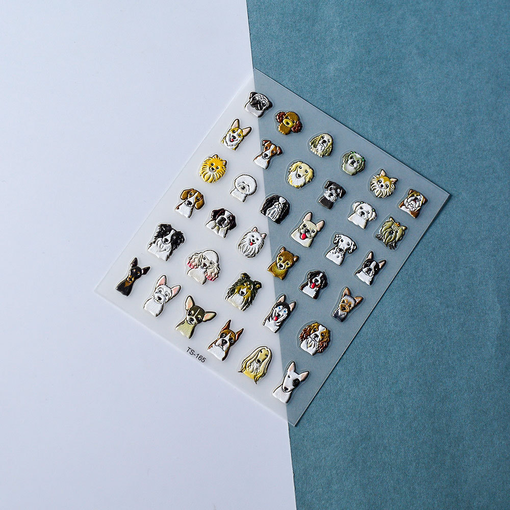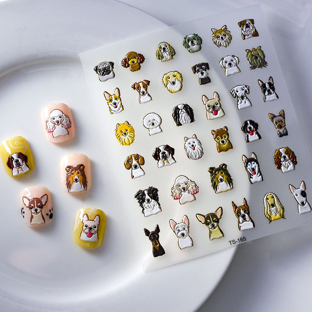 5D 네일 아트 스티커 엠보싱 수하물 노트북 방수 낙서 귀여운 강아지 3 차원 네일 스티커 스폿 헤어스토어 가기