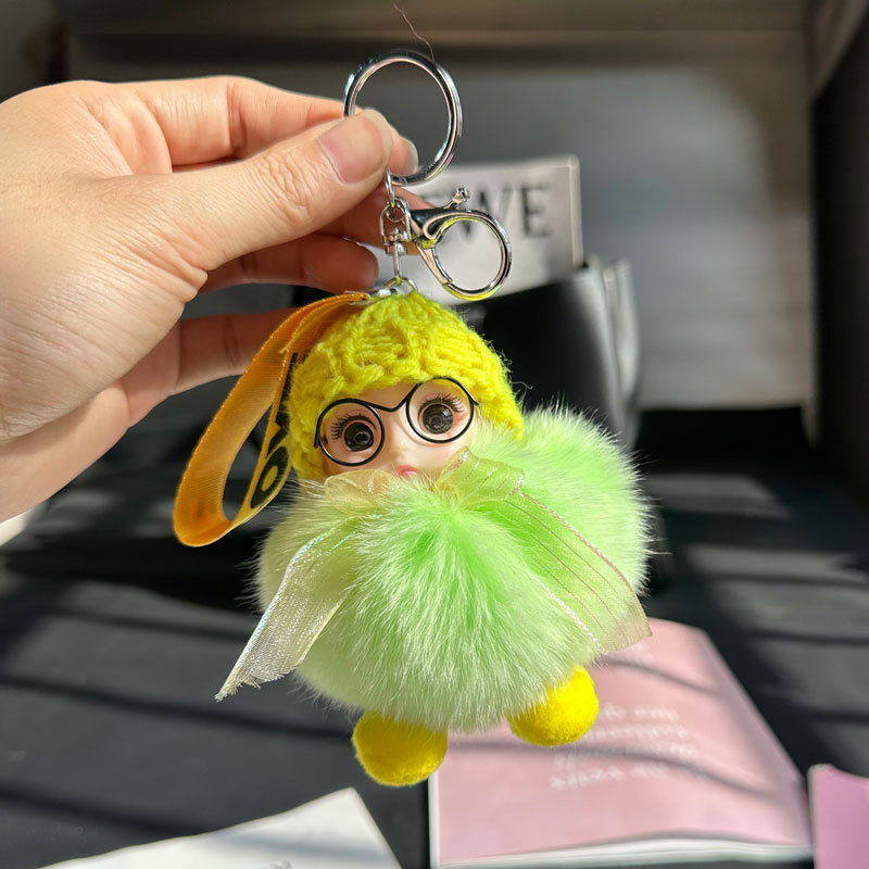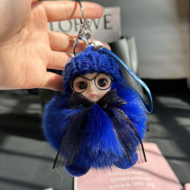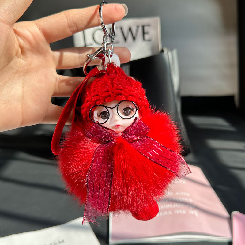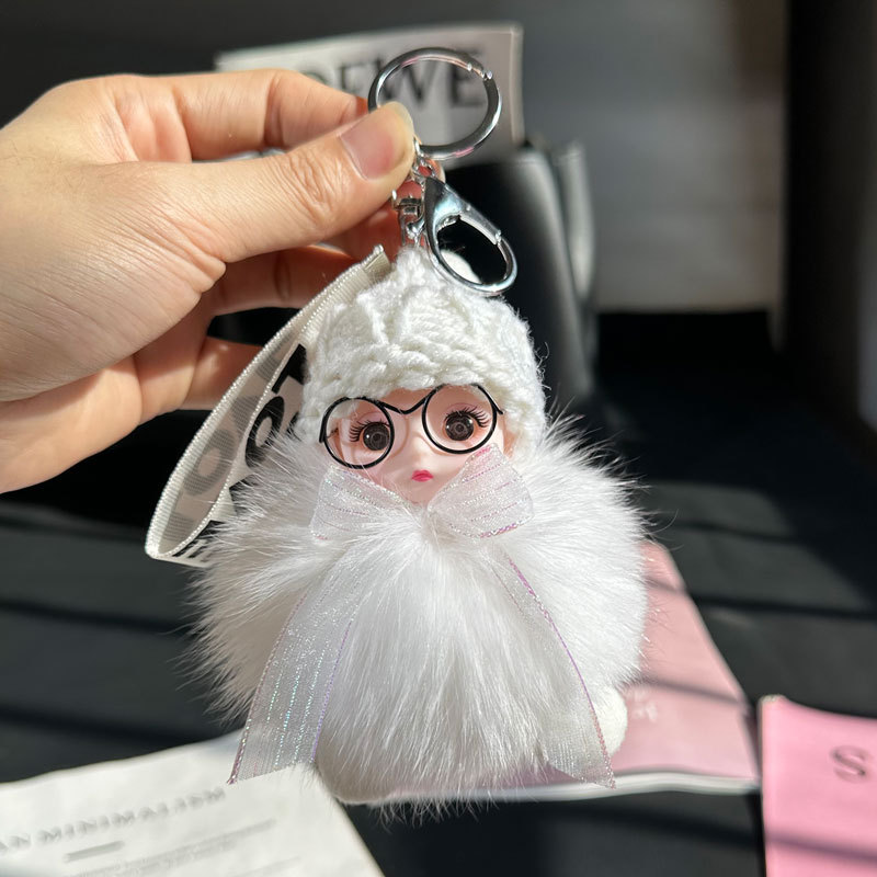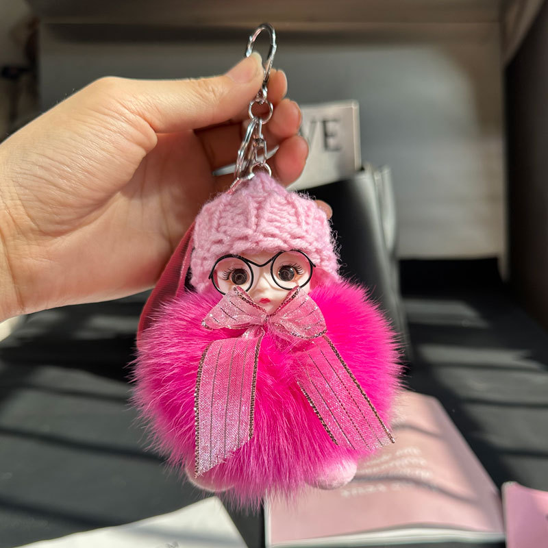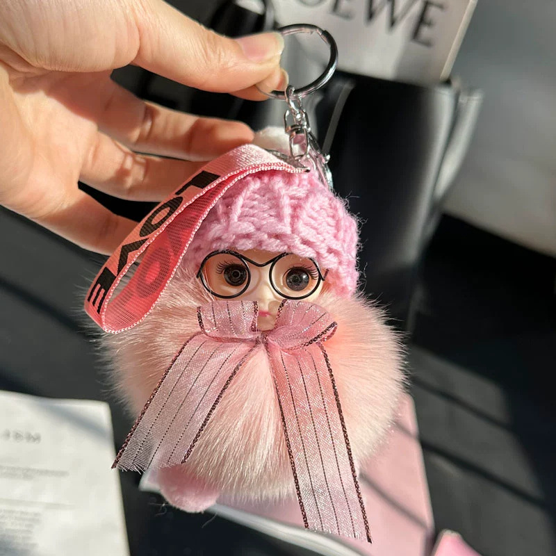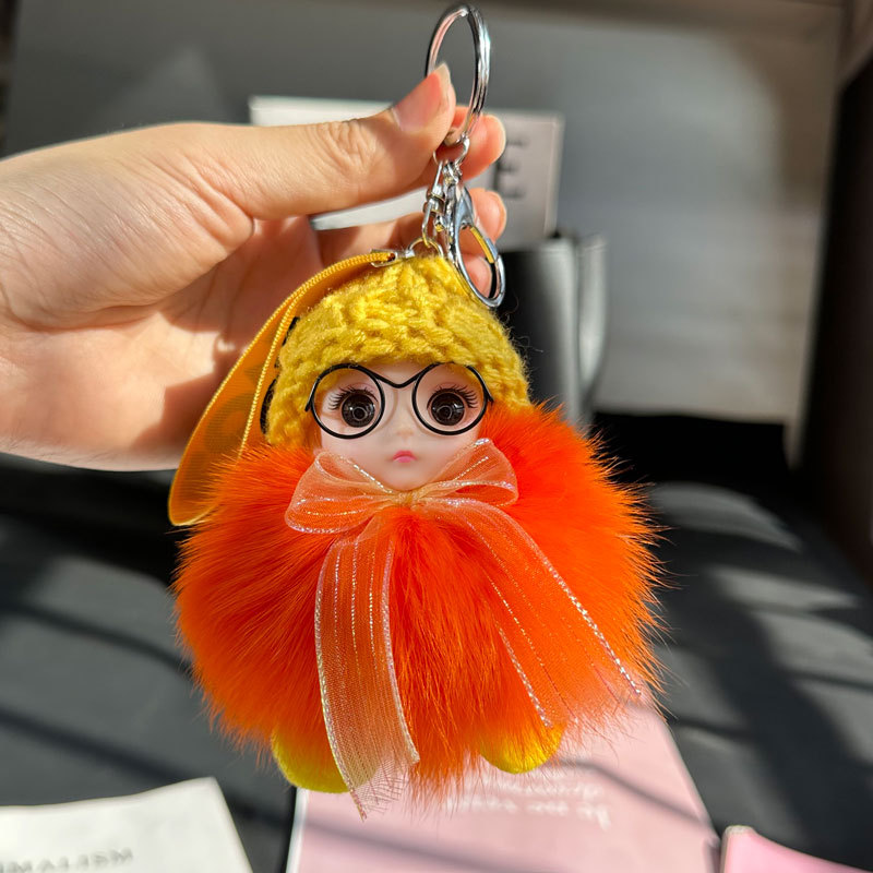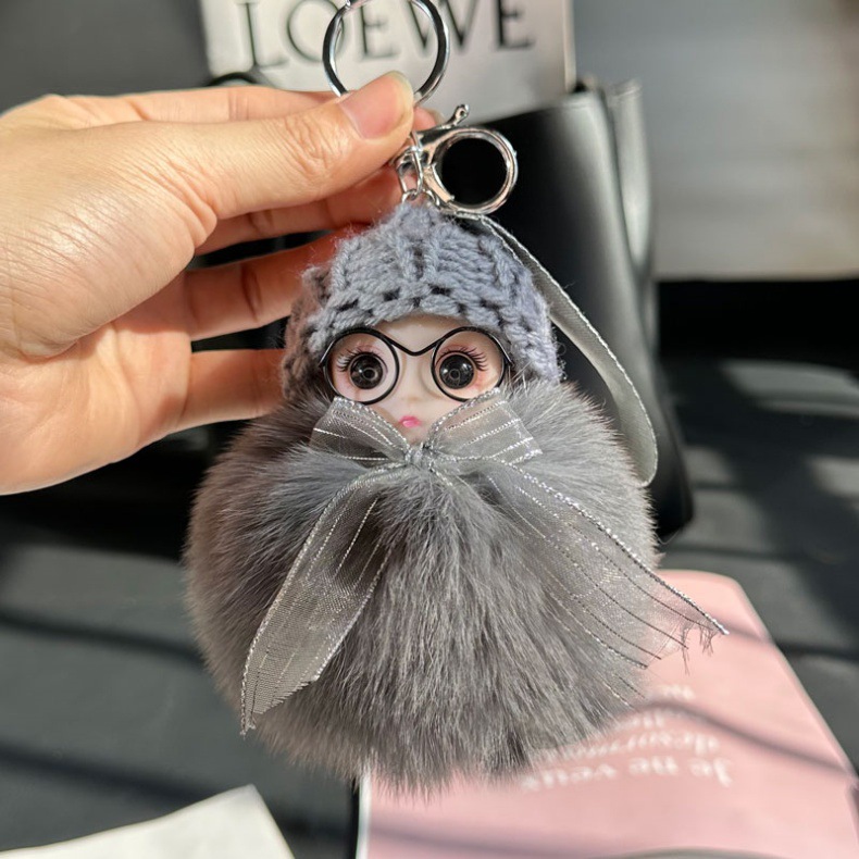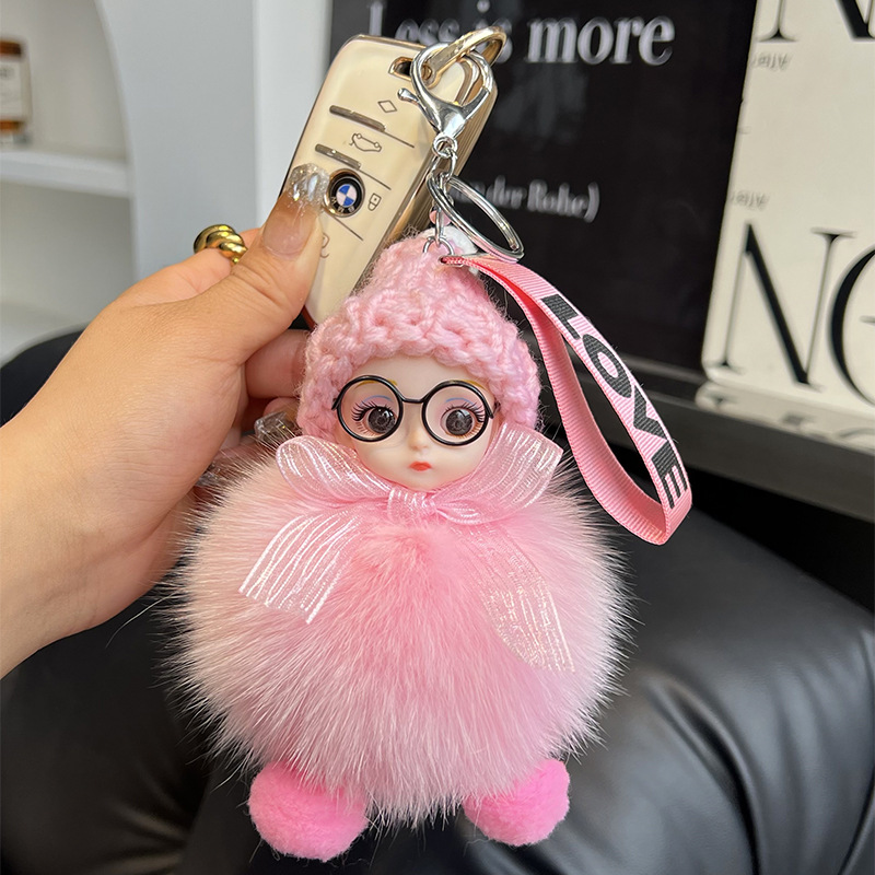 도매 픽업 여우 모피 인형 자동차 키 체인 펜던트 소녀 귀여운 봉제 공 학교 가방 펜던트 액세서리