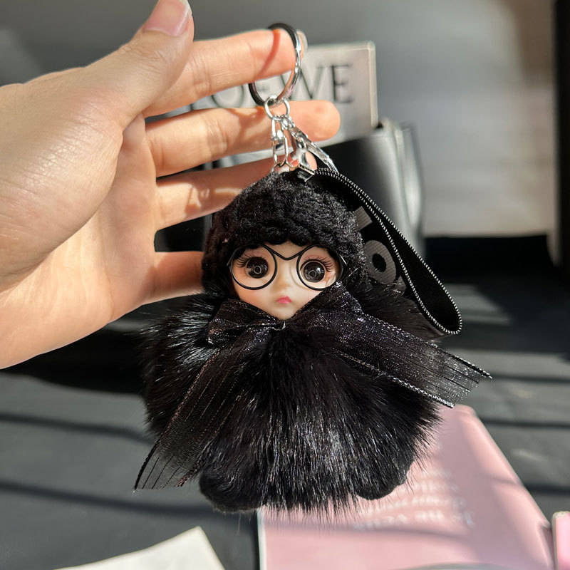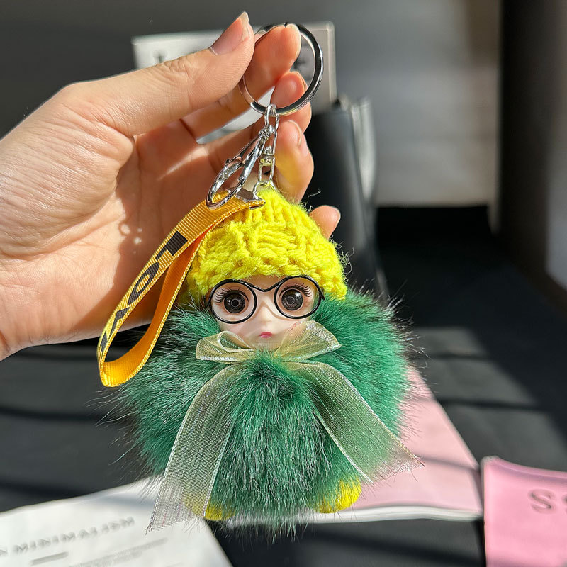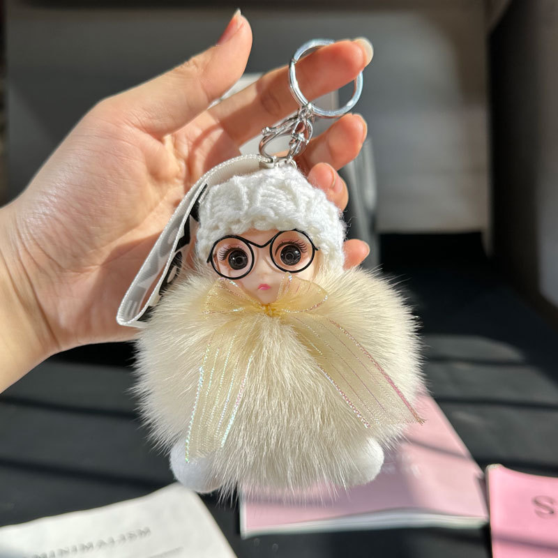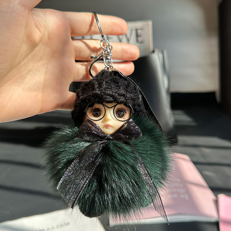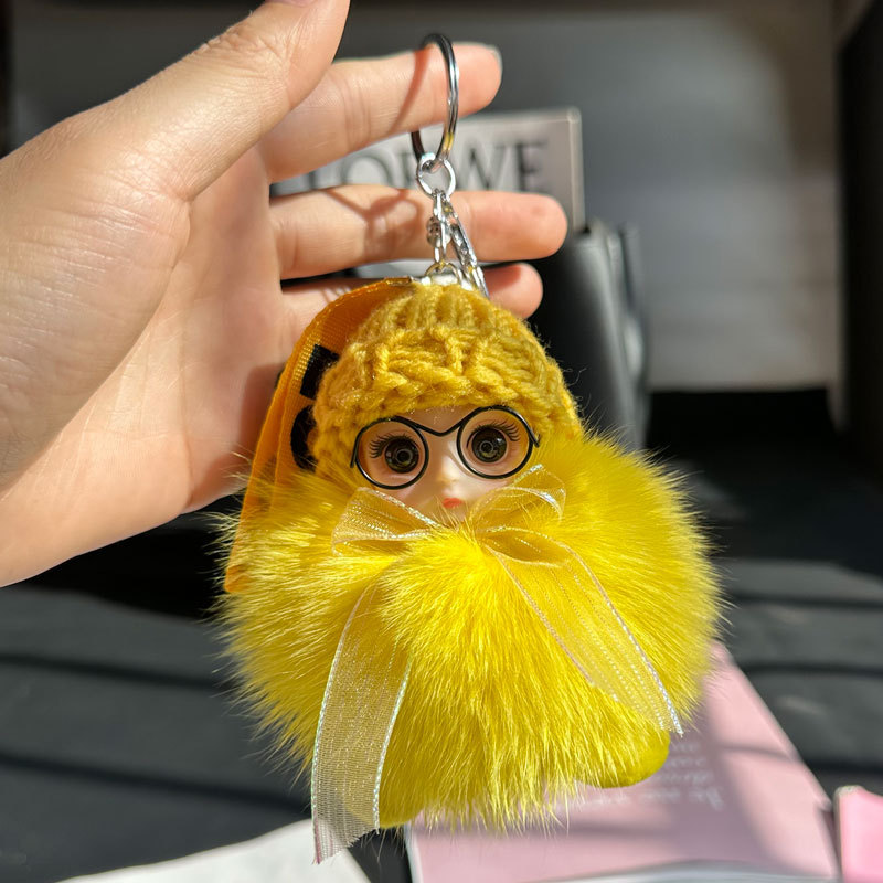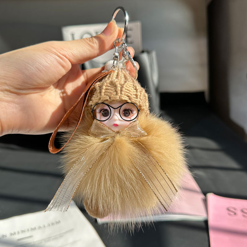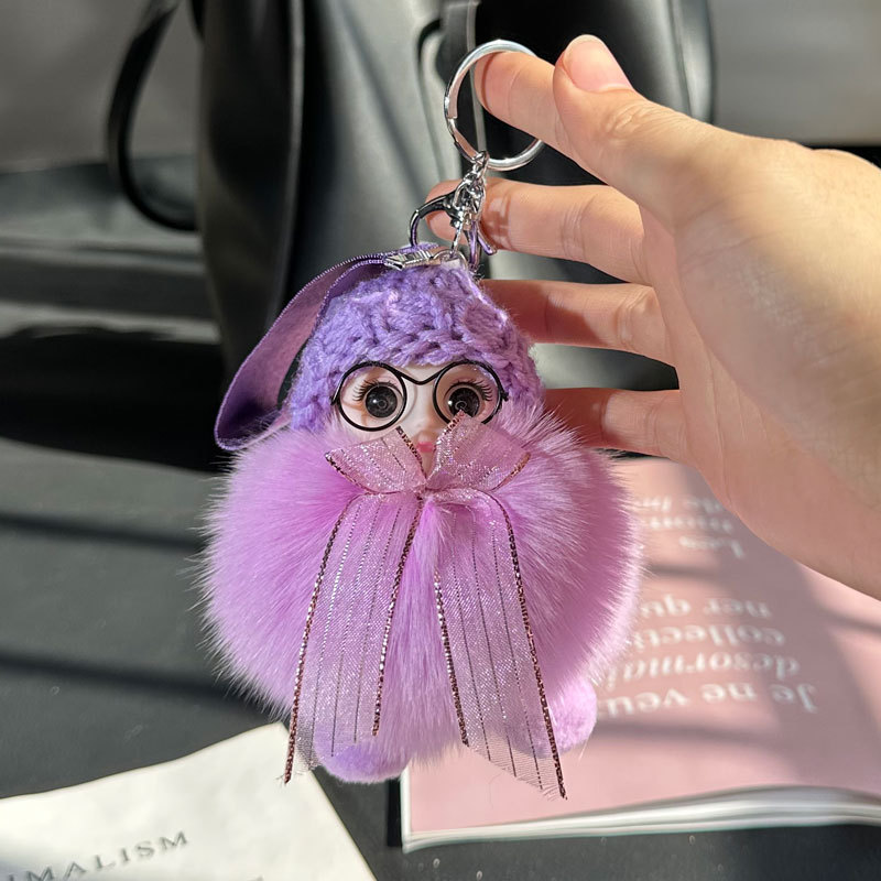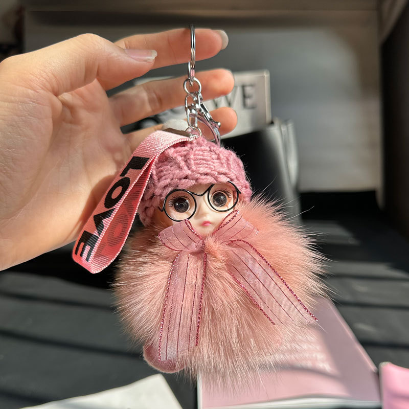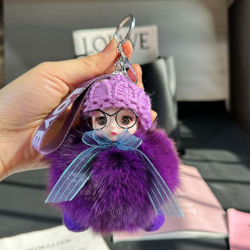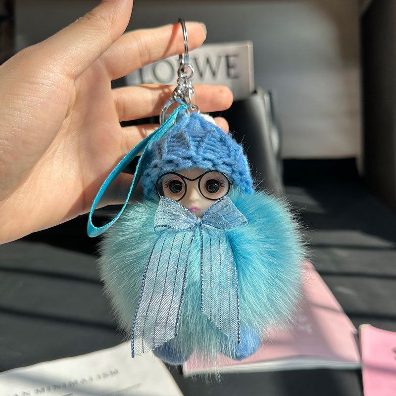 도매 픽업 여우 모피 인형 자동차 키 체인 펜던트 소녀 귀여운 봉제 공 학교 가방 펜던트 액세서리