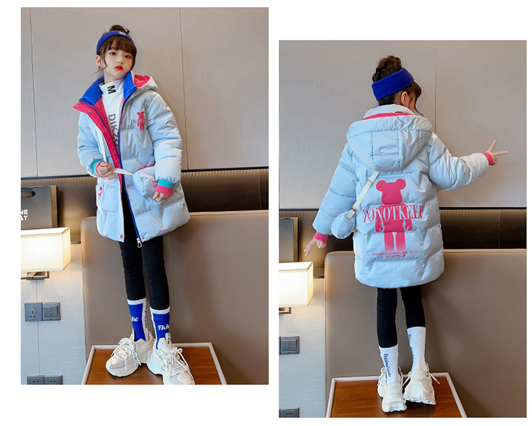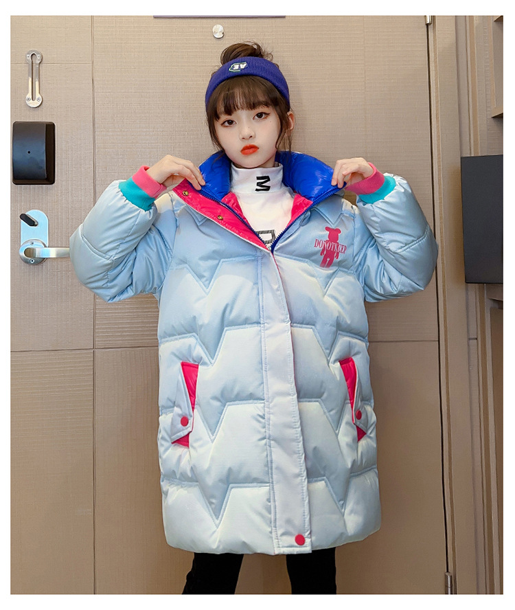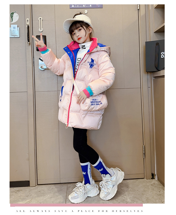 여아용 다운 코튼 자켓 2025 겨울 신상 스타일리시 두꺼운 아동용 코튼 코트 여아용 중간 길이 코튼 자켓 트렌디스토어 가기