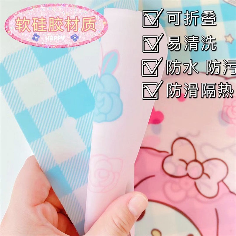 만화 Merleti 귀여운 내유성 실리콘 고온 저항하는 레스토랑 테이블 매트 새로운 접는 휴대용 안티-스케일링 안티-웨어 플레이스 매트스토어 가기