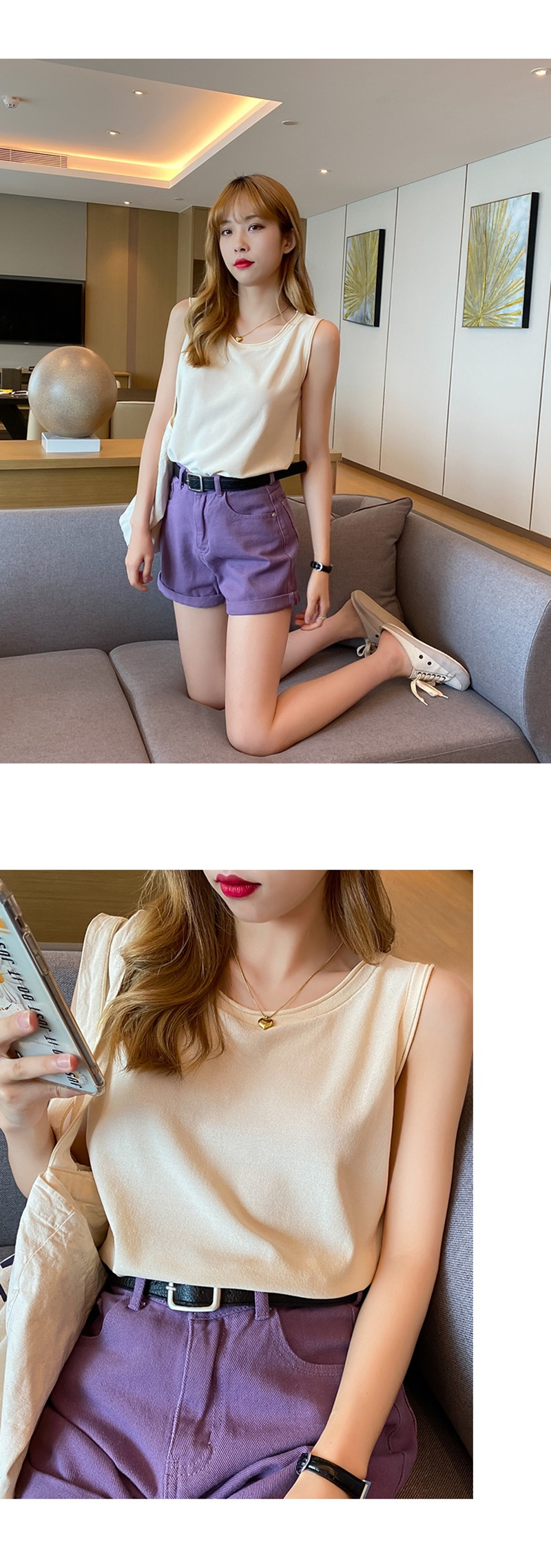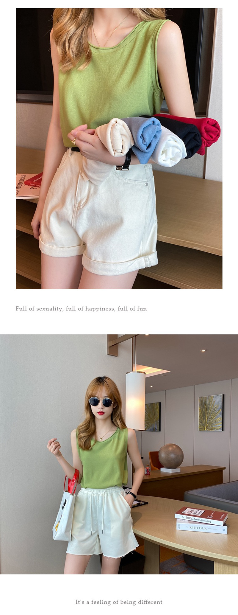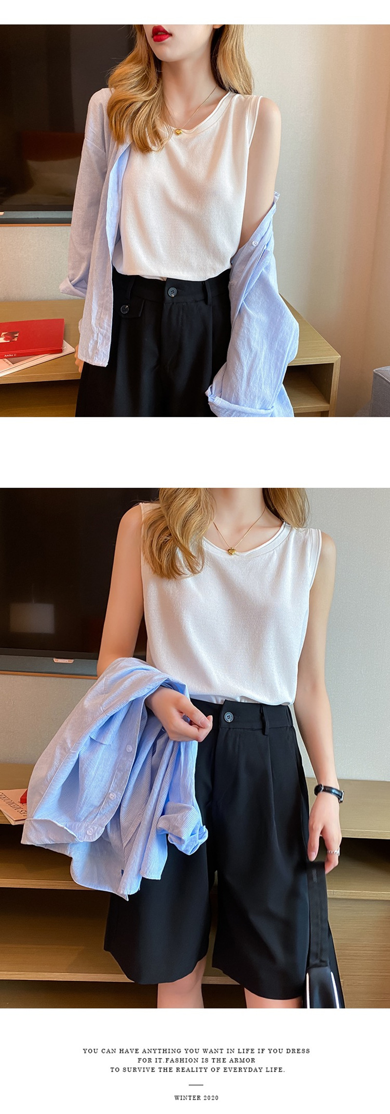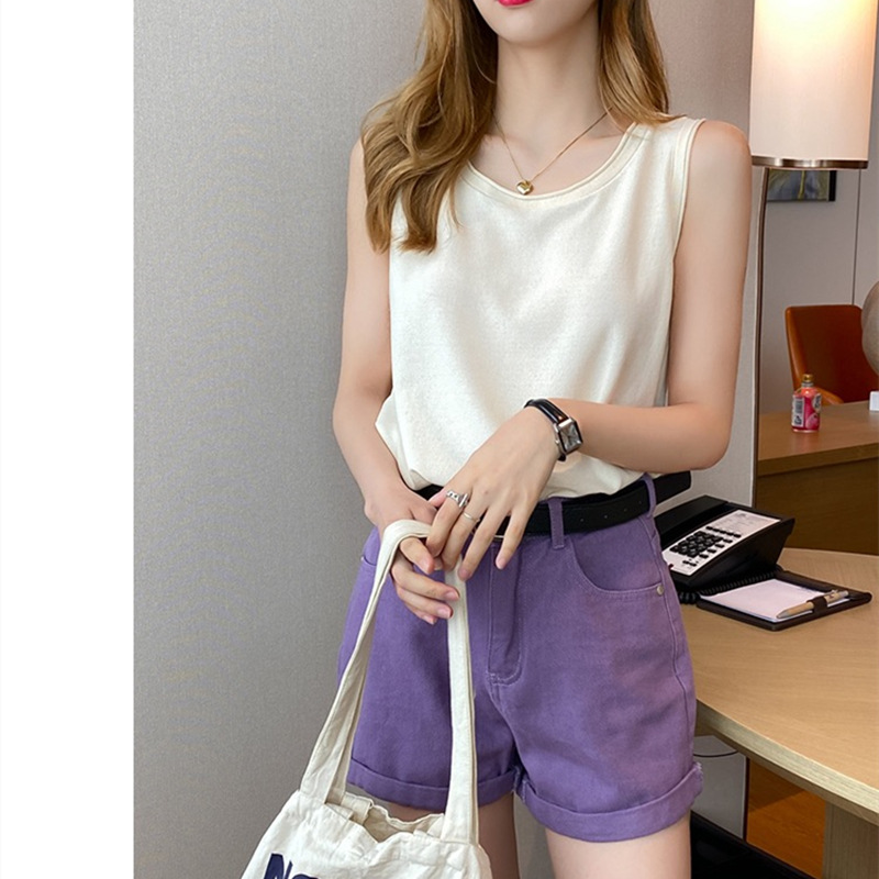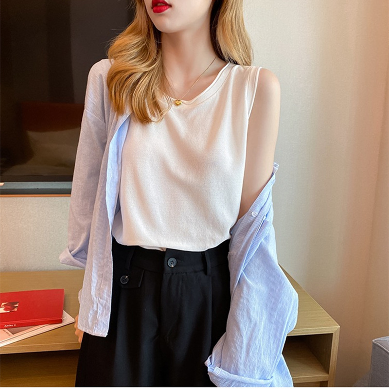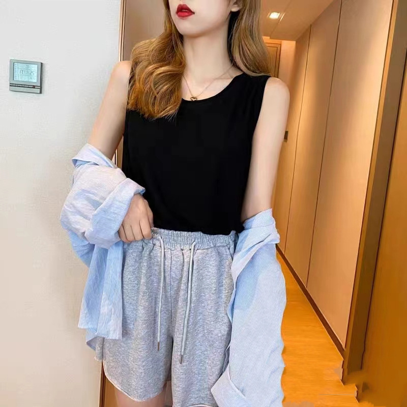 얇은 화이트 아이스 실크 니트베이스가 달린 여성 조끼스토어 가기
