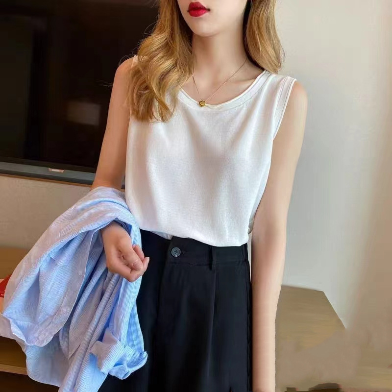 얇은 화이트 아이스 실크 니트베이스가 달린 여성 조끼