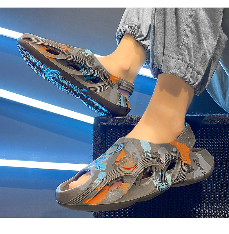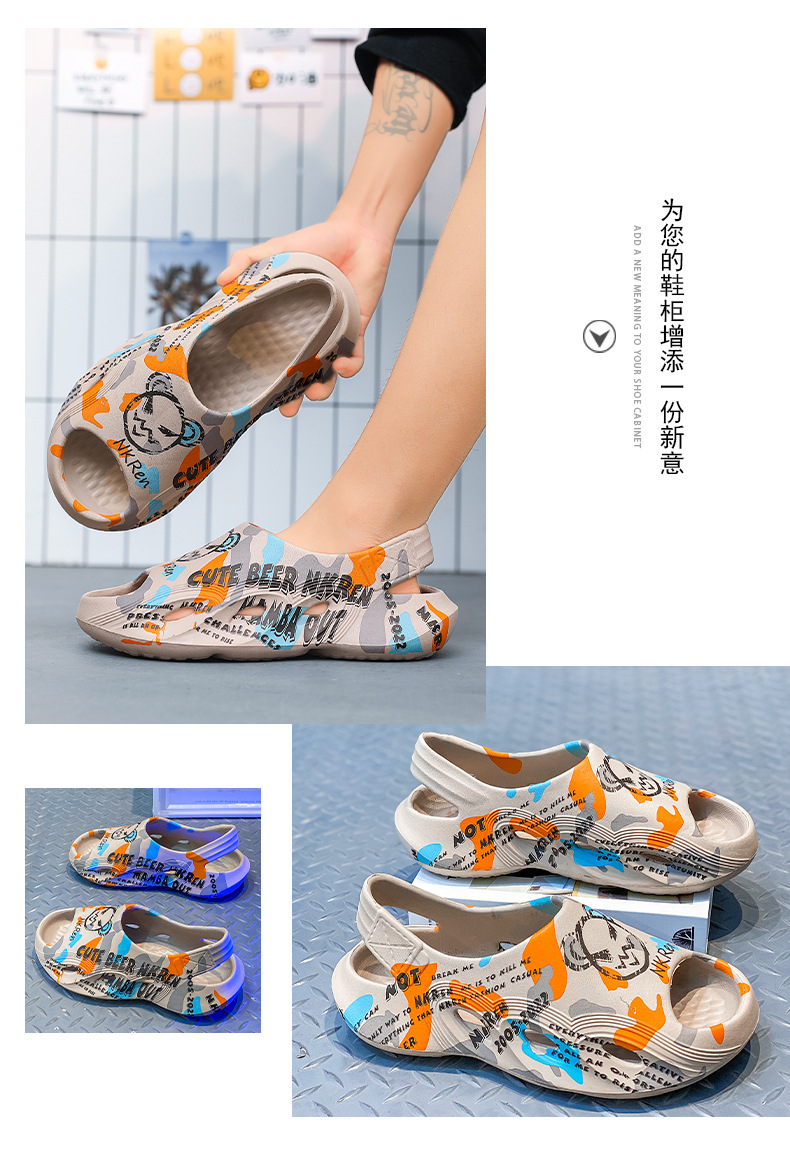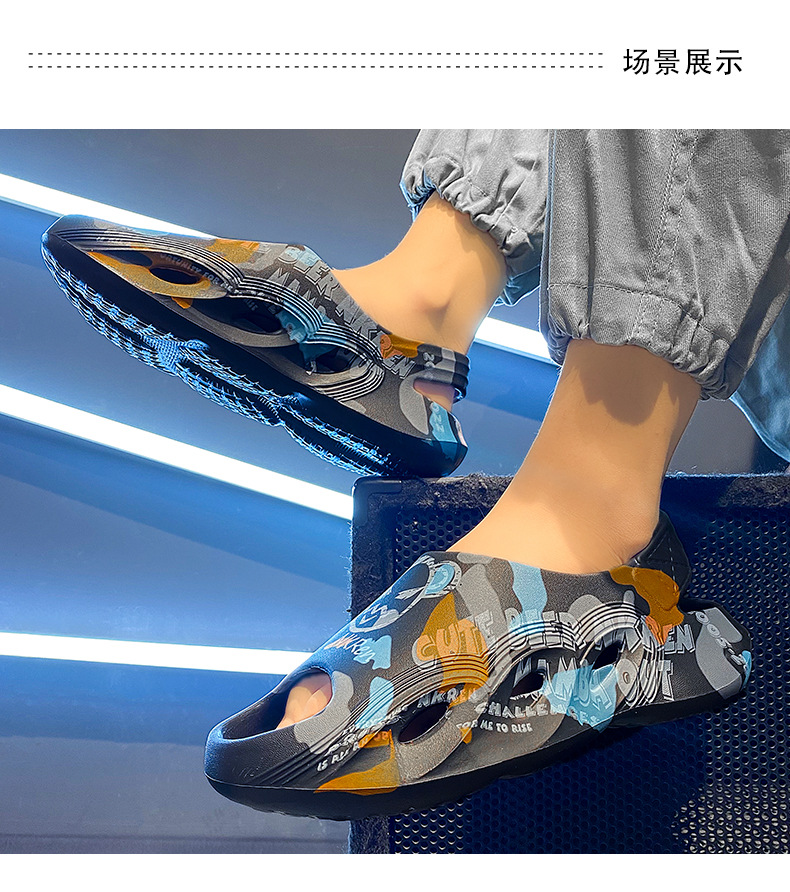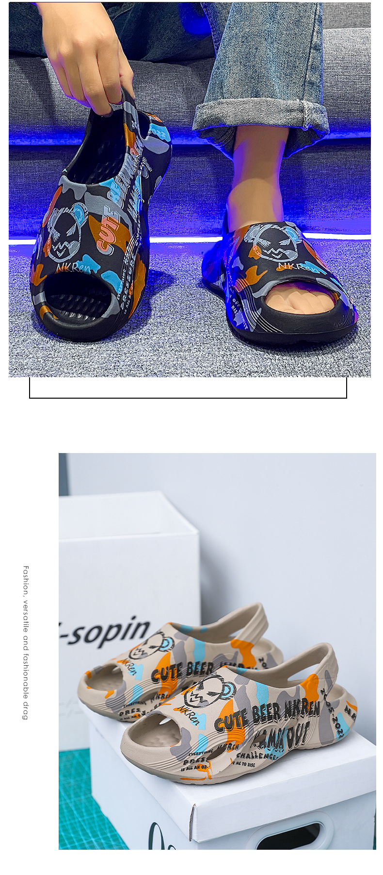 새로운 위장 슬리퍼 남성용 여름 실내 가정용 샌들은 두꺼운 바닥 욕실 미끄럼 방지 비치 슈즈 도매로 배설물을 밟습니다.스토어 가기
